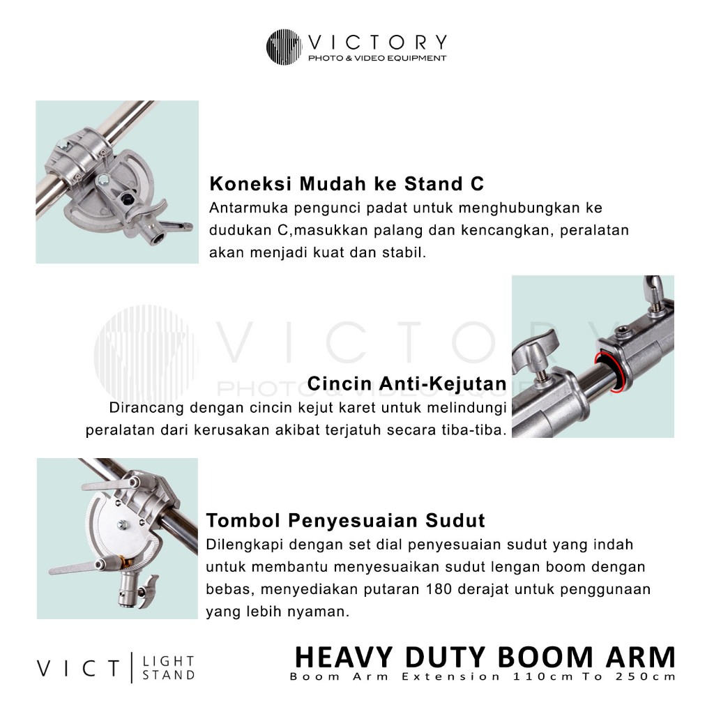 Heavy Duty Boom Arm Extension 110cm to 250cm Top Light, Boom Arm Besar Heavy Duty Max 250cm