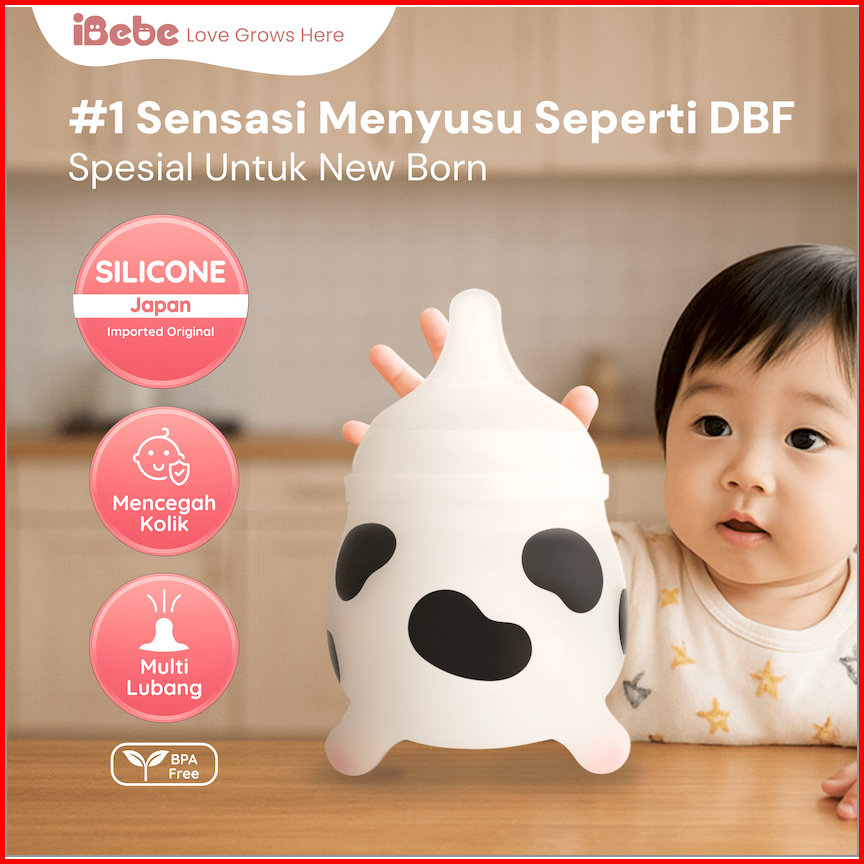 Superset Lebih Hemat Ibebe Botol Susu Dot Bayi Silikon Motif Sapi 3pcs Sikat Botol Leher Lebar Bpa Free Anti Kolik Anti