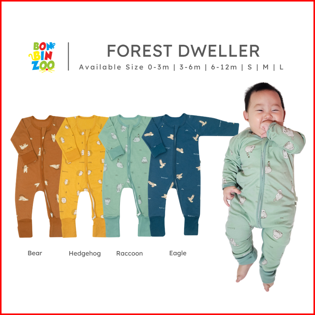 Bonbinzoo - Sleepsuit Resleting Baby Newborn Forest Dweler Series Jumper Anak Bayi 0 - 3 Tahun