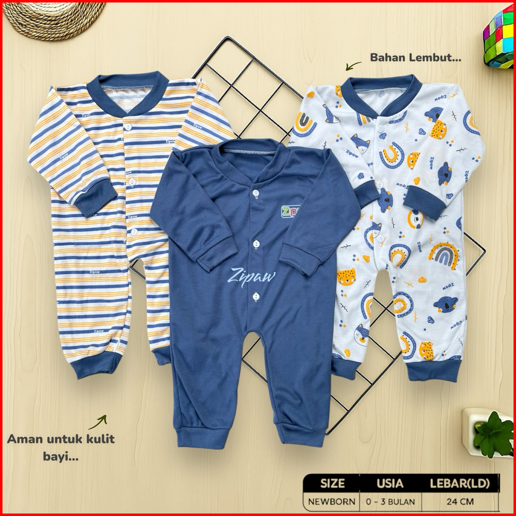 3 Pcs Jumpsuit Bayi Newborn 03 Bulan Full Motif Lucu Tebal Lembut Kancing Depan Baju Tidur Bayi Terbaru