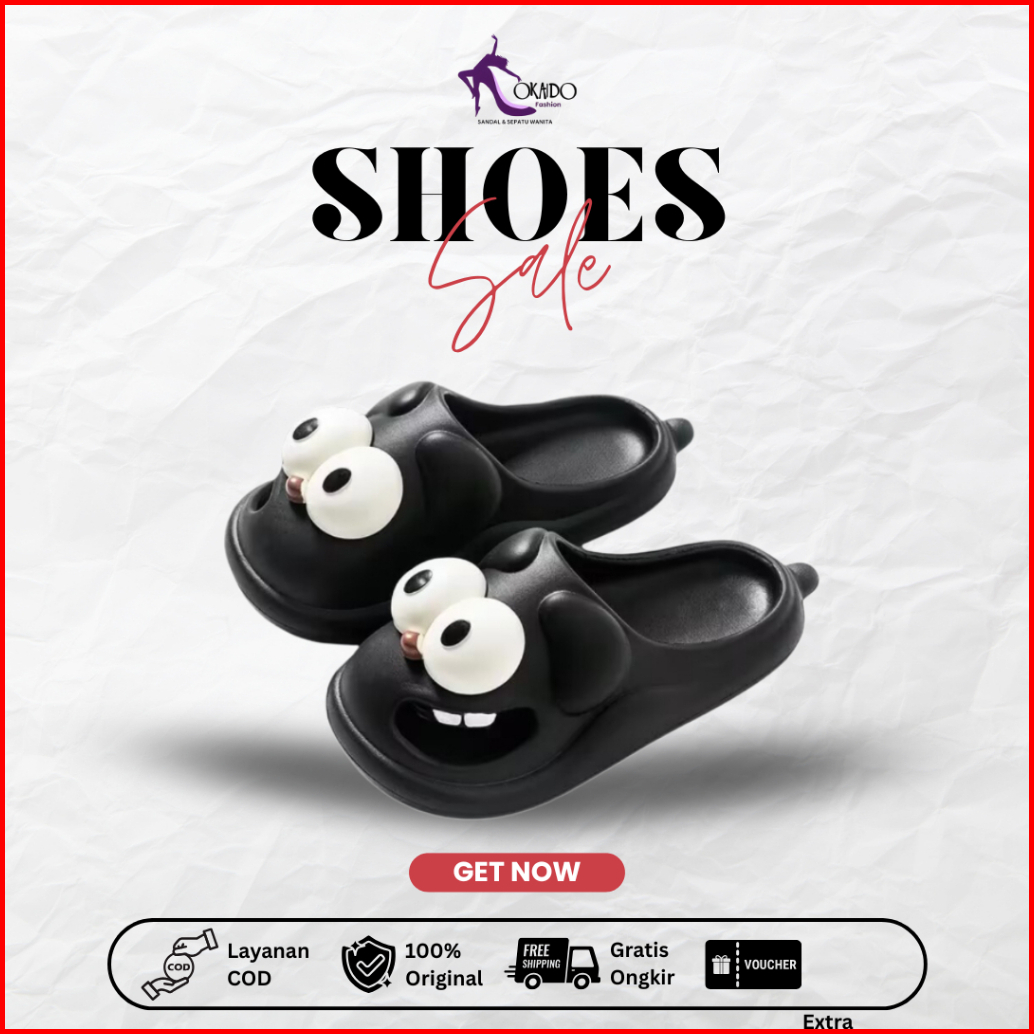 Okaido Sandal Selop Rumah Wanita Cewek Karet Motif Cartoon Lucu Model Korea Style Terbaru