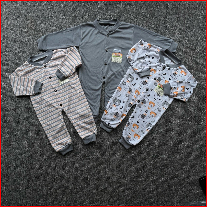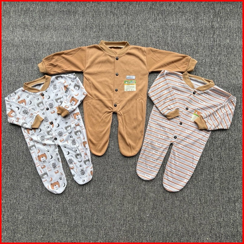 3 Pcs Sleepsuit Jumper Bayi Newborn Usia 0-6 Bulan Series Kuning Kubus Model Kaki Tutup Buka