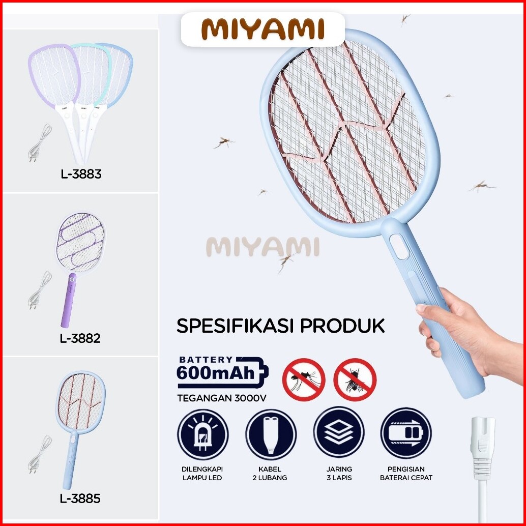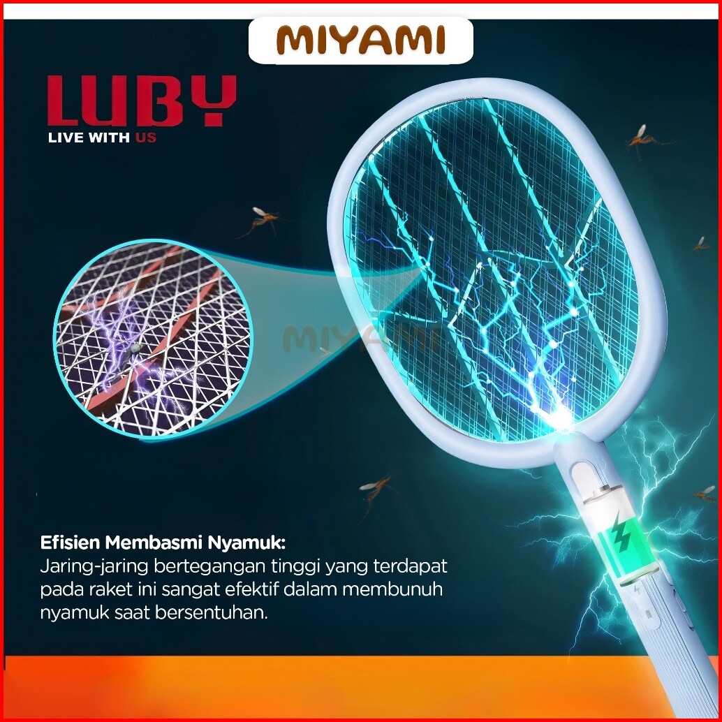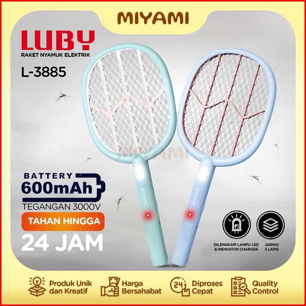 Luby Raket Nyamuk Elektrik L-3882 L-3883 L-3885 Portable Rechargeable Lampu Led Indikator - Mi