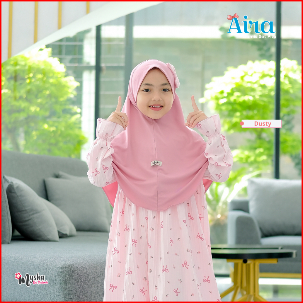 Mysha Kids Muslimah - Aira Series Gamis Anak Perempuan Jilbab Pita Dress Muslim Anak Set Hijab 2-11