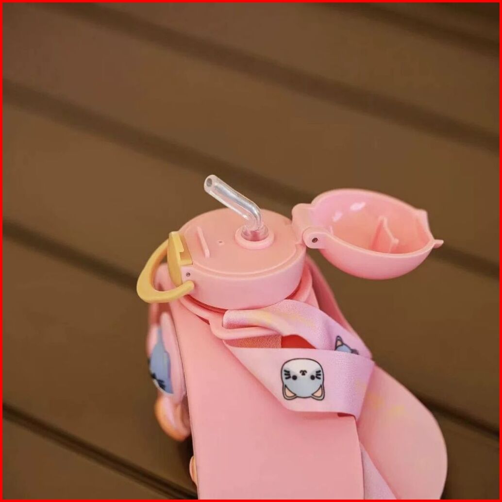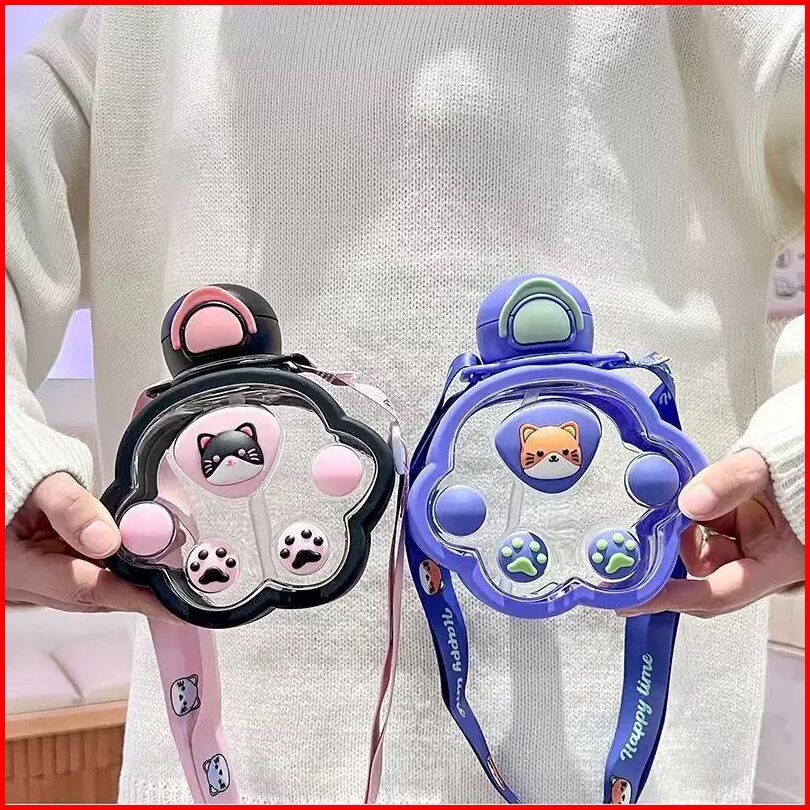 Botol Minum Anak Sekolah Tk Sd Paud Tali Panjang 520ml Karakter Anak Kucing Lucu Meow Food Grade