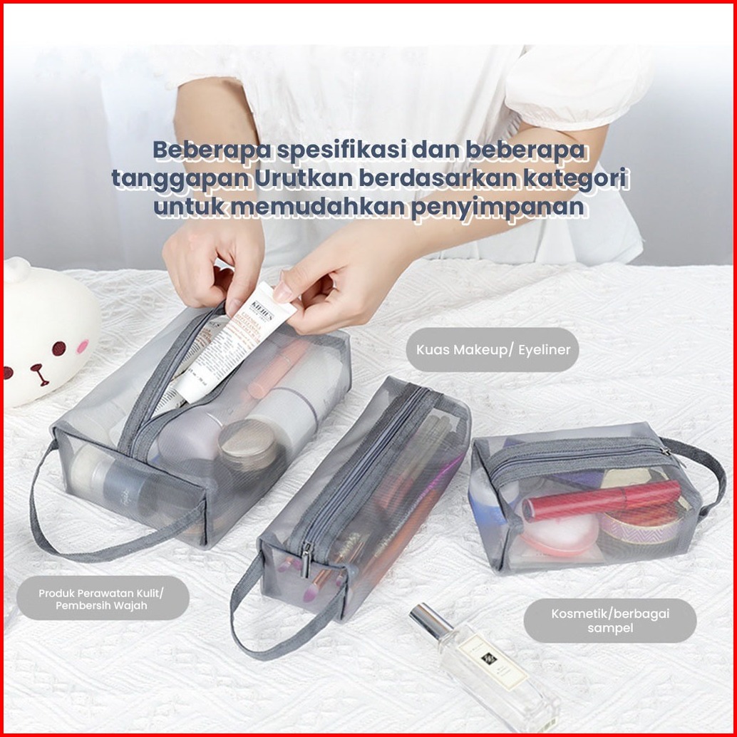 Pouch Travel Tempat Penyimpanan Kosmetik Skincare Alat Tulis Jaring Praktis - Pkk