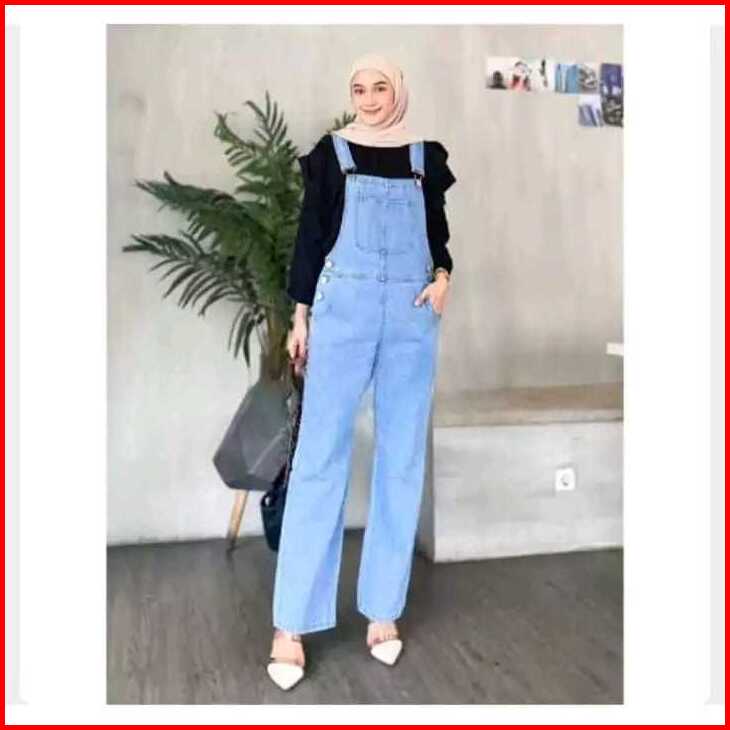 Realpict Overall Jeans Jumpsuit Wanita Biru Dan Hitam Celana Kodok Jeans Wanita Jumpsuit Jeans