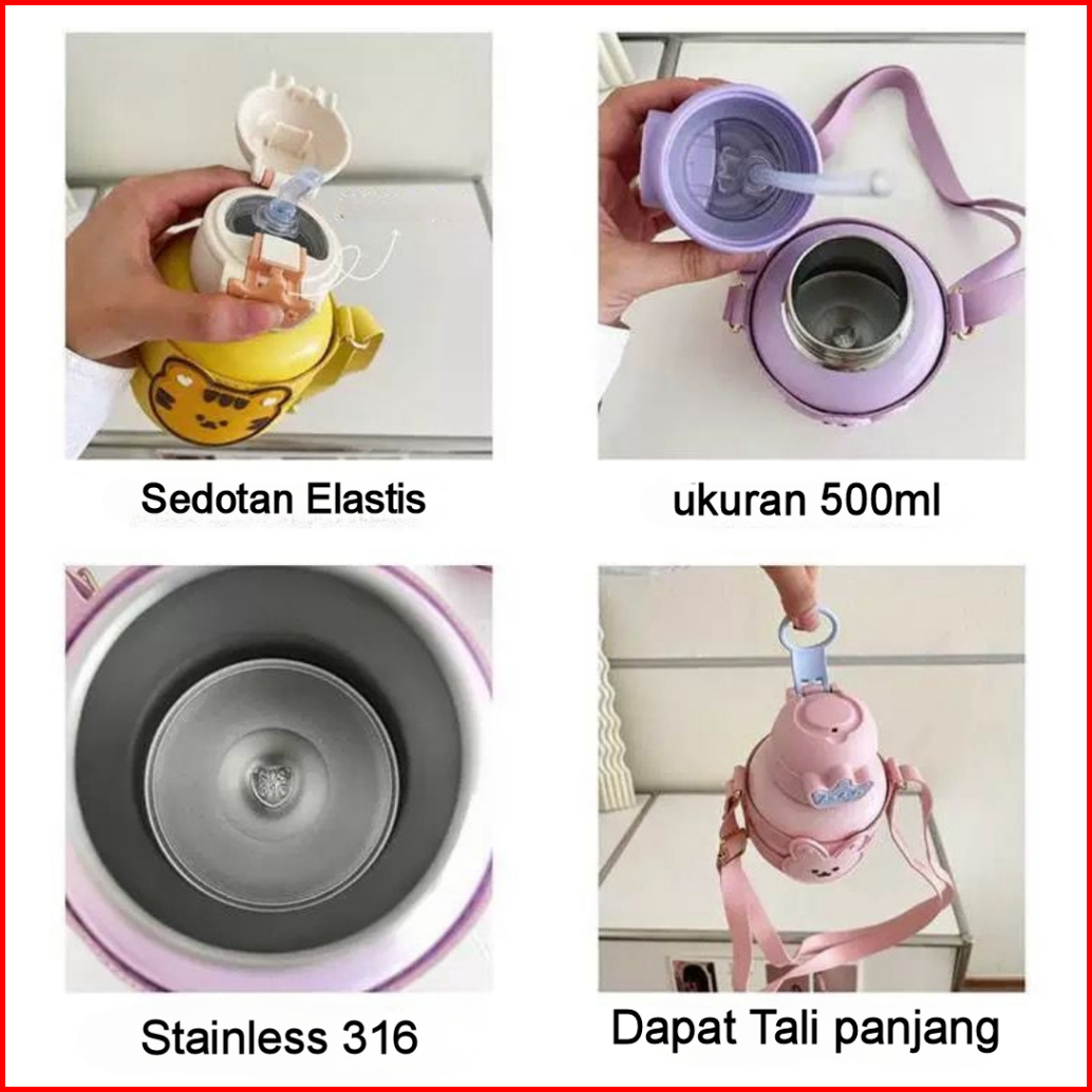 Botol Minum Stainless Anak 316 Sedot 500ml Tali Panjang Bpa Free Hampers Kado Anak Sekolah