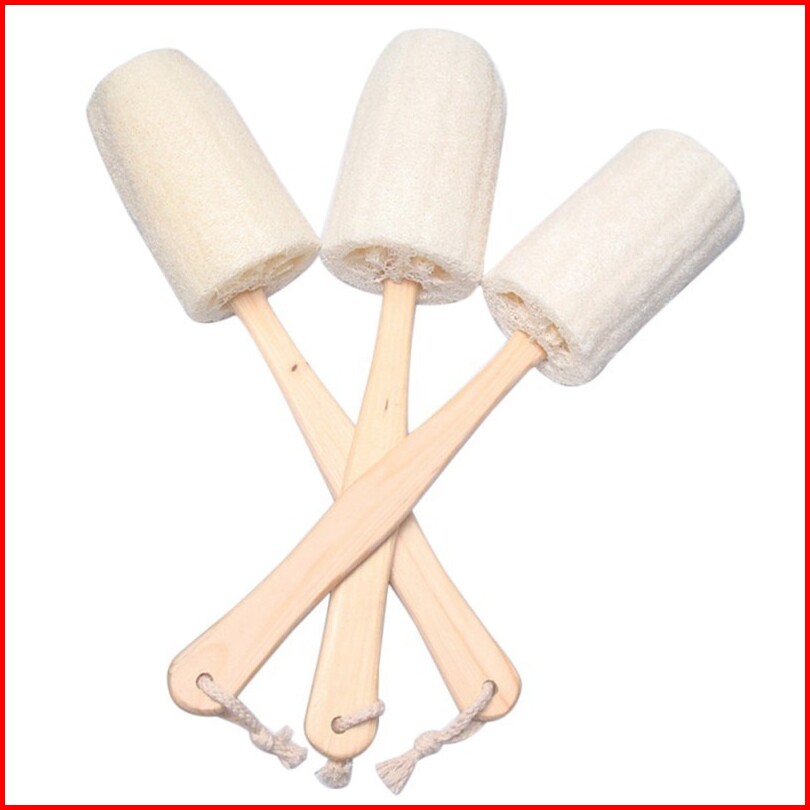 Spons Mandi Loofah Dengan Gagang Kayu Gosok Punggung Loofah Body Scrub