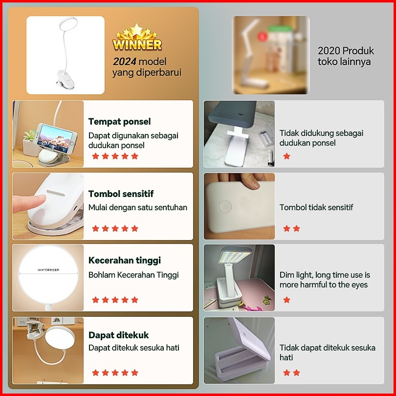 Lampu Meja Lampu Belajar Jepit Usb Led Portable Charge Touch Screen Adjustable 7000k