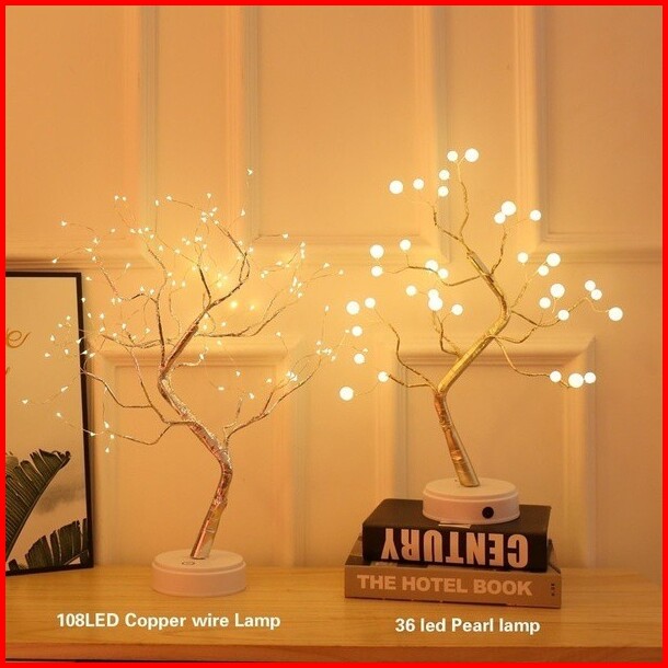 Lampu Meja Tidur Pohon Hiasan Unik Colokan Usb Tenaga Baterai Dekorasi Kamar Kawat Tumblr Led
