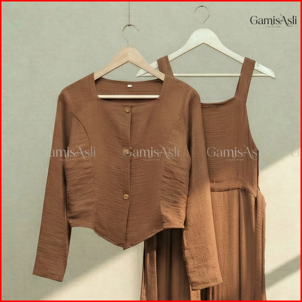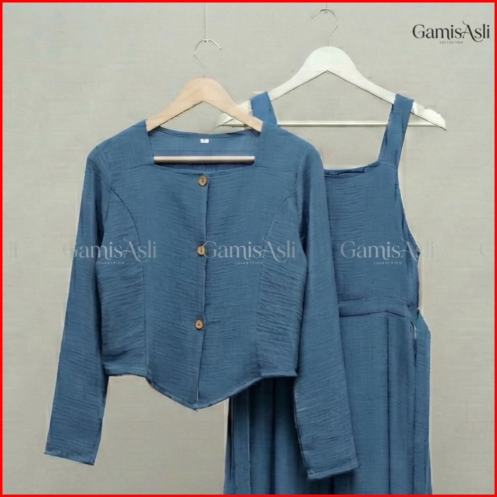 Oneset Overall Model 2in1 Bahan Crinkle Termurah Terbaru Terlaris Fashion Muslim