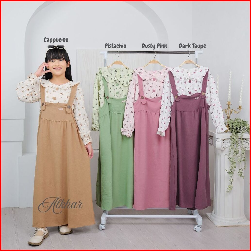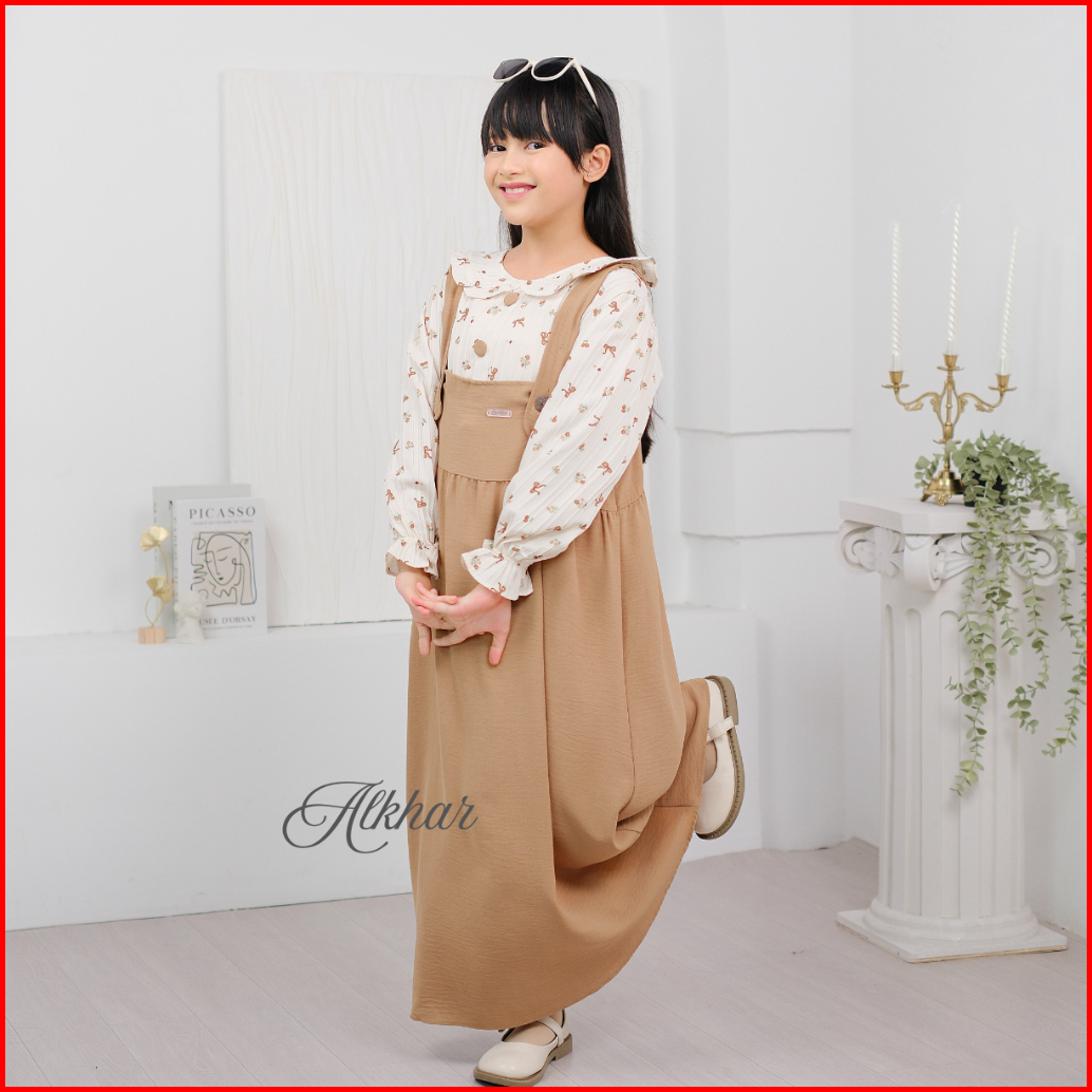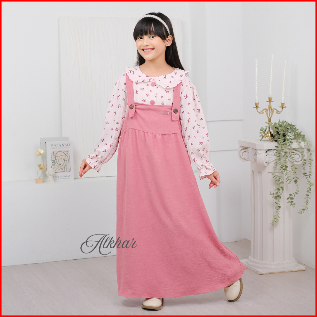 Alkhar - Gamis Dress Overall Anak Perempuan Korean Style Elora Crinkle 3-13 Tahun Lathifa Series