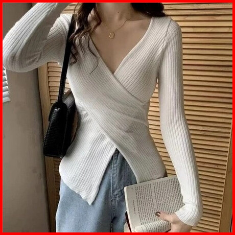 Jiso Knit Silang Korean Style Wrap Top V Neck Model Kekinian Atasan Wanita Korean Top