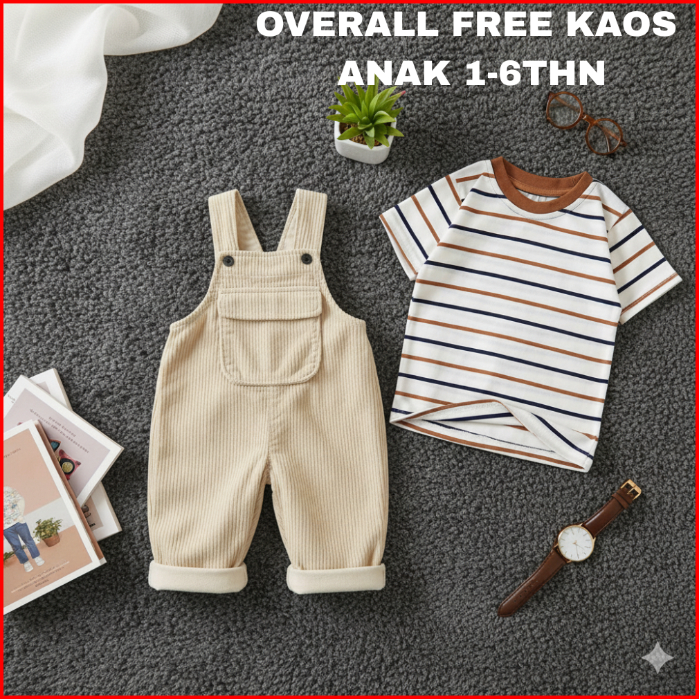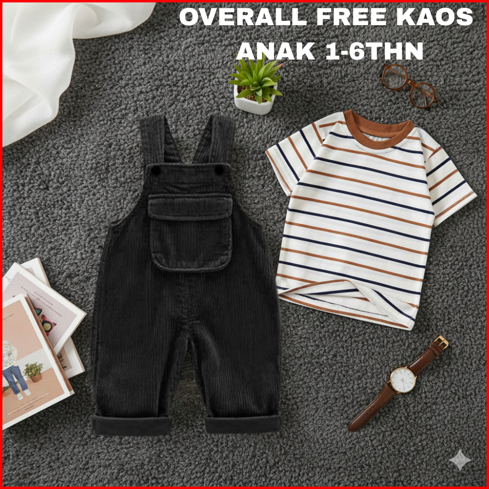 Overall Anak Corduroy Outfit 1-6 Tahun Terbaru Keren Free Kaos