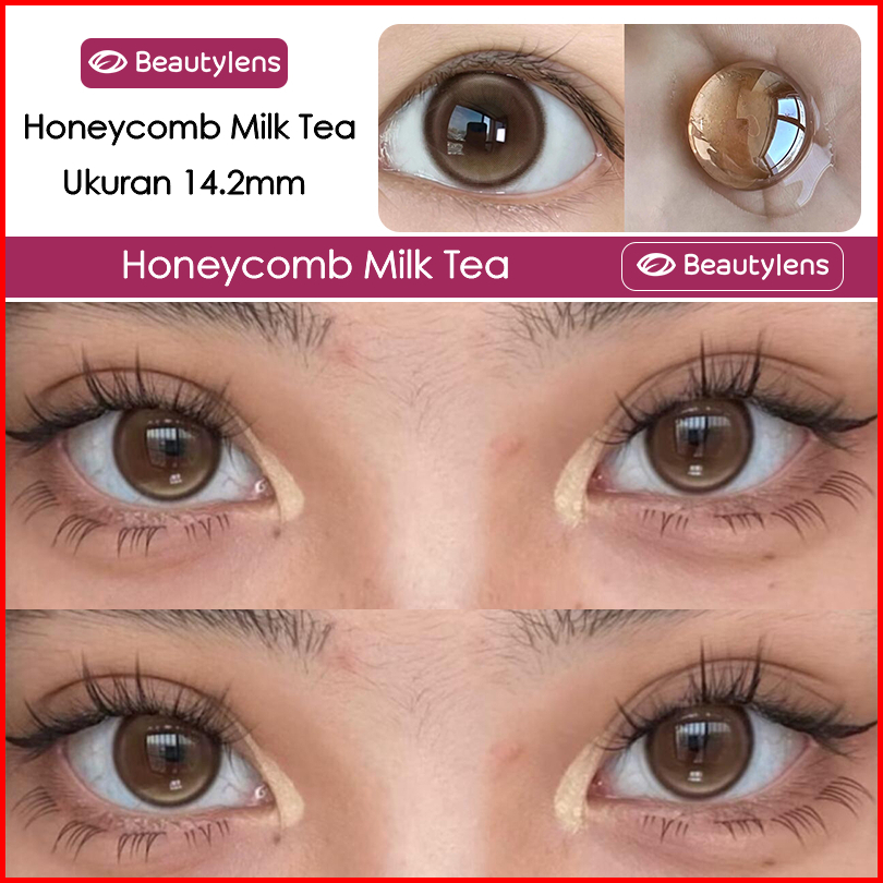Beautylens Softlens Minus 0.00 S D -8.00 Lensa Yearly Hema Nvp 14.2mm Honeycomb Milk Tea Coklat