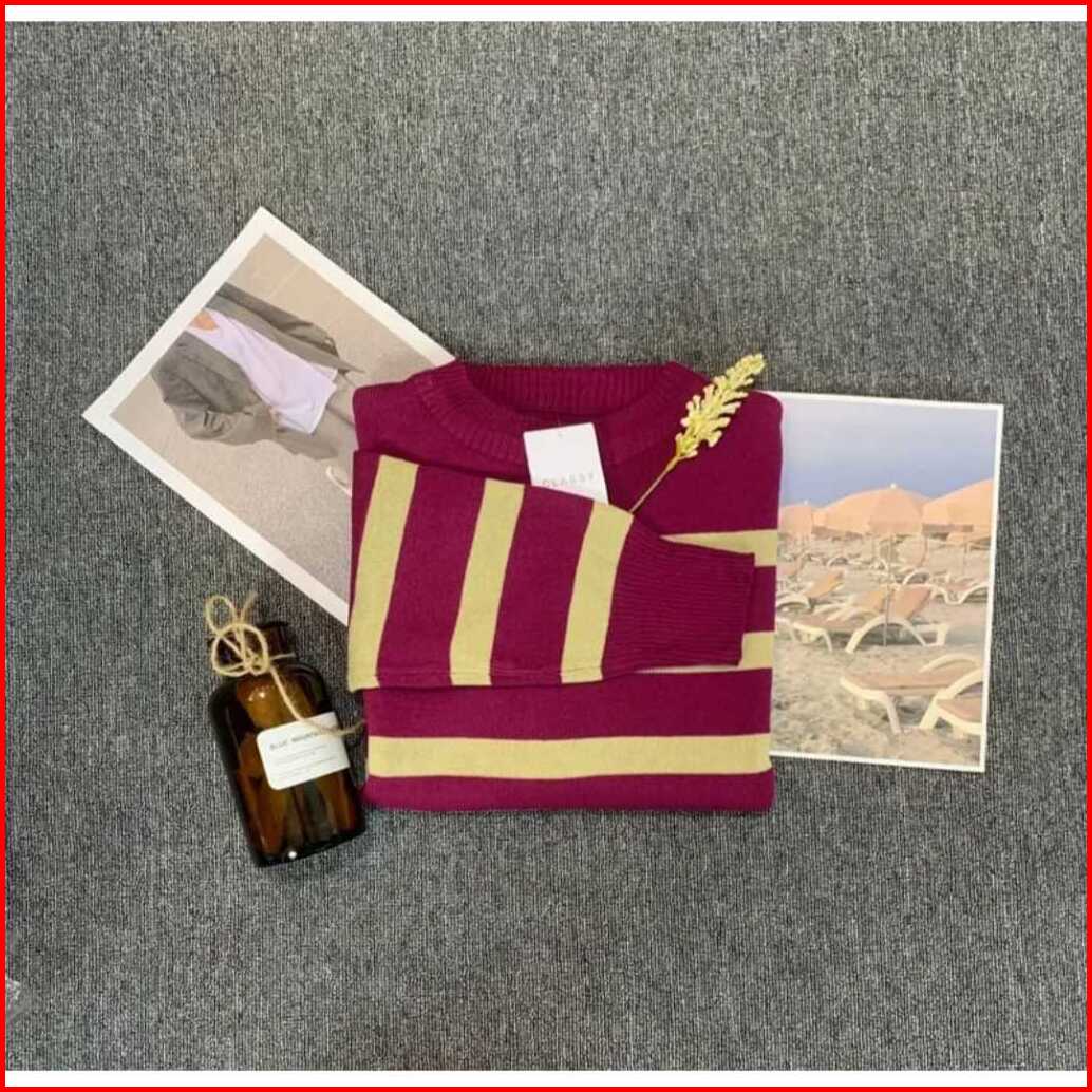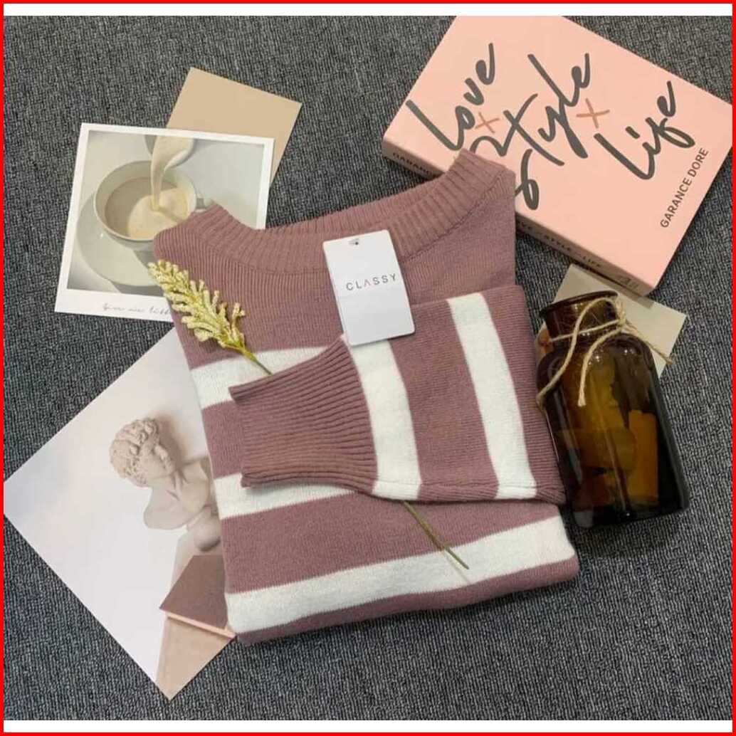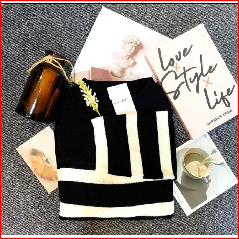 Sweater Rajut Garis Garis Knit Korean Style Atasan Rajut Oversize Top 1