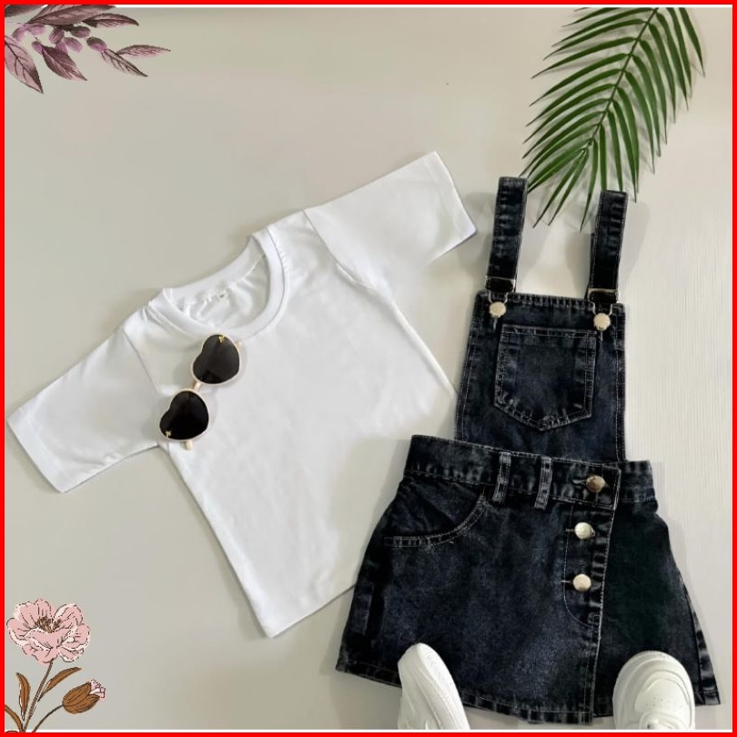 Overall Rok Celana Jeans Ariana Set 2 In 1 Overall Baju Kaos Anak Perempuan Usia 1-7 Tahun