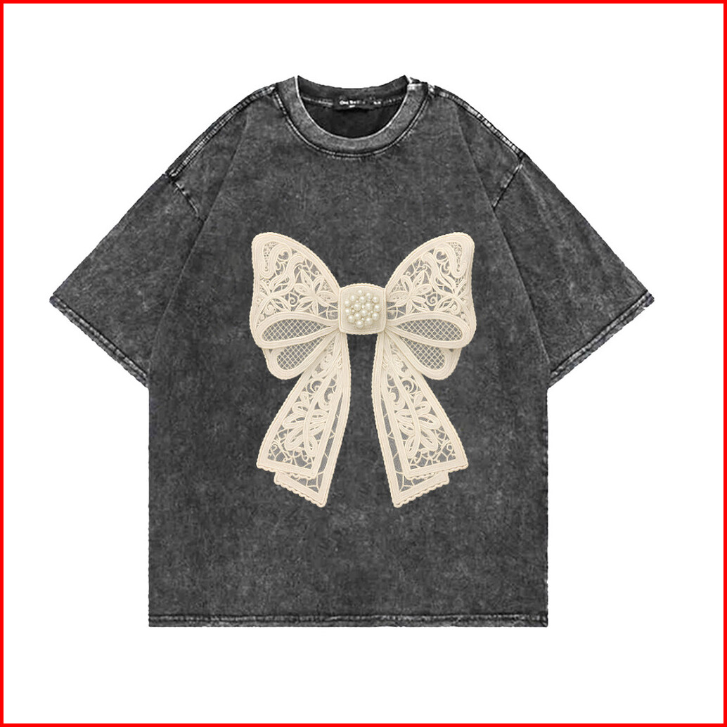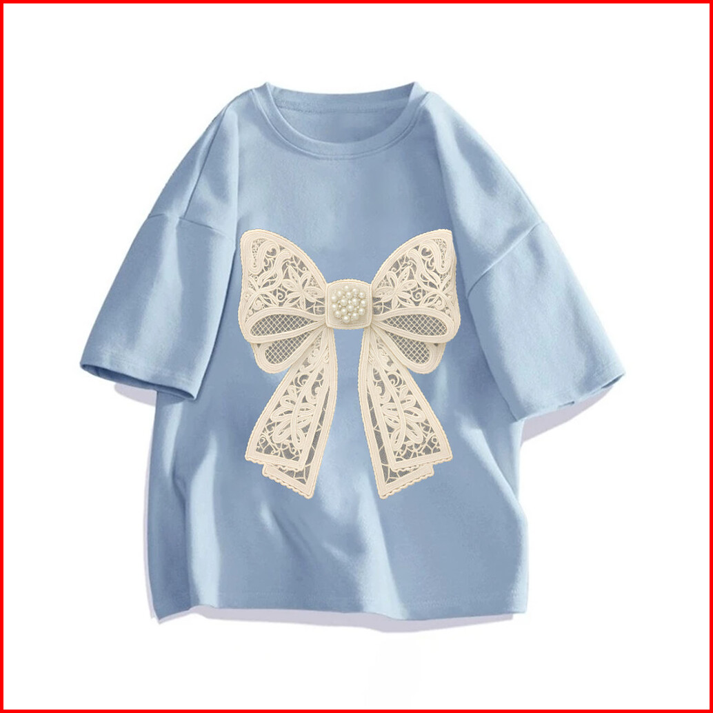 Jessica Tshirt Lengan Pendek Kaos Oversize Wanita Motif Ribbon Pita Korean Style Baju Bahan 100 Cotton