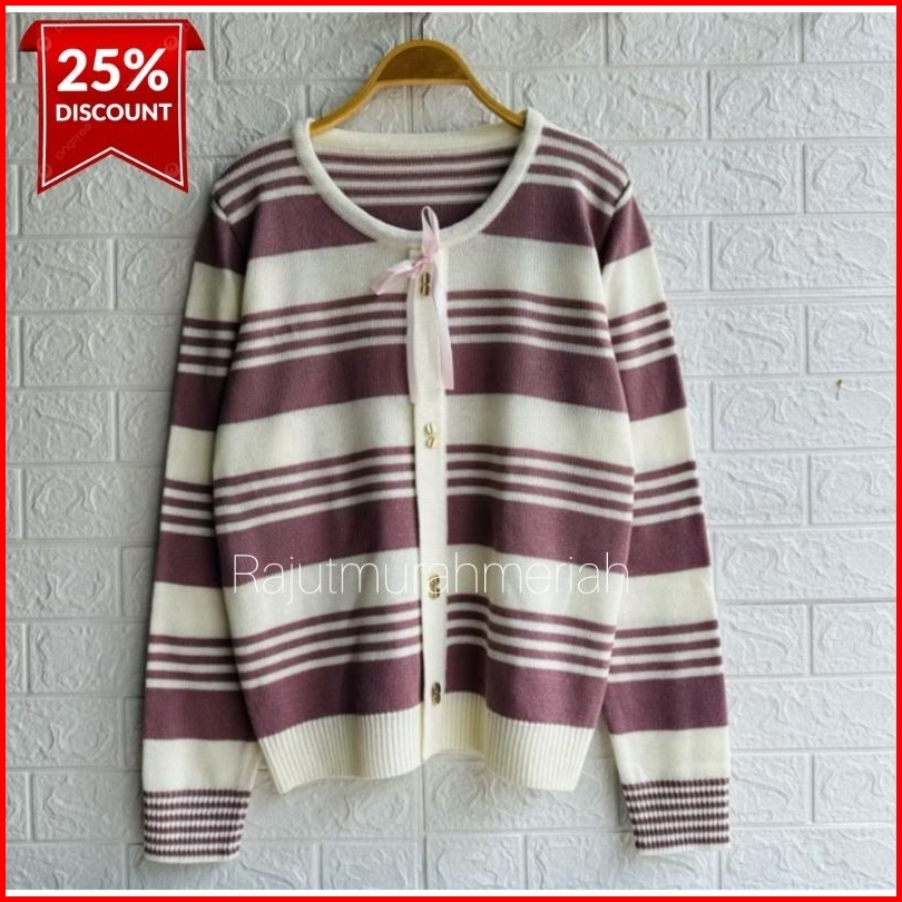 Rmm Sweater Rajut Kancing Pita Depan Atasan Wanita Lengan Panjang Rajut Terbaru