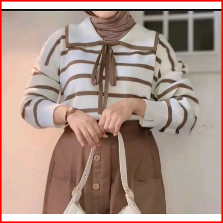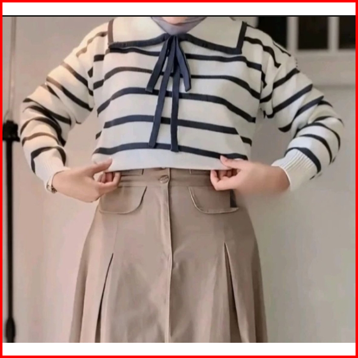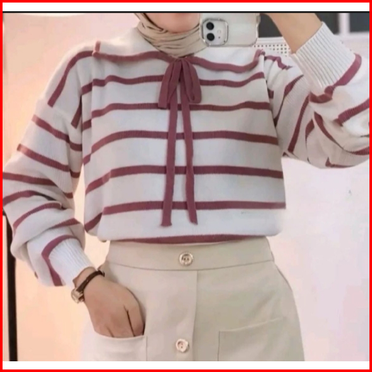 Blouse Knitted Pita Lucu Atasan Rajut Wanita Motif Garis Premium Berkualitas