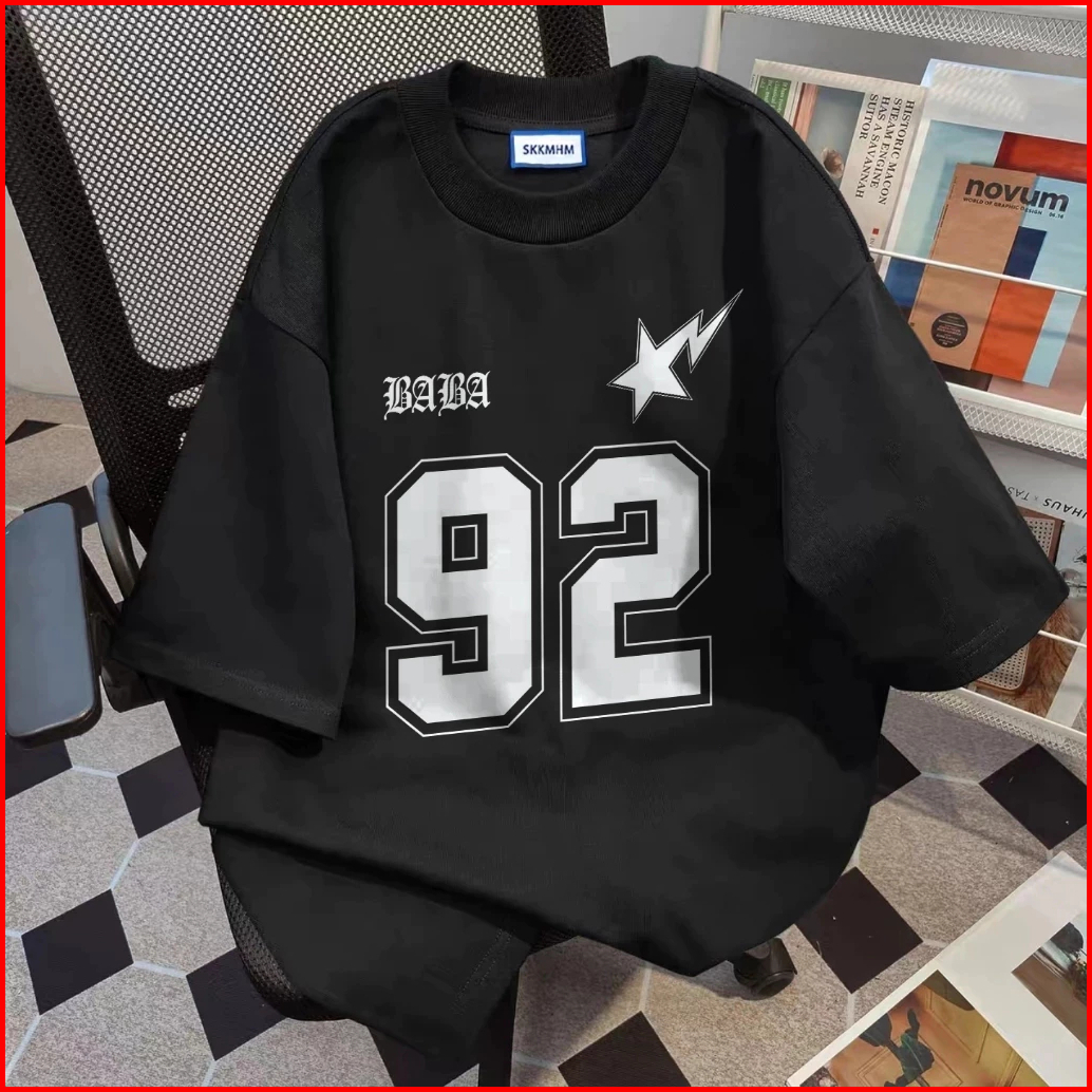 Kaos Motif Angka 92 Bintang Desain Street Fashion Katun Berkualitas Oversize Fit