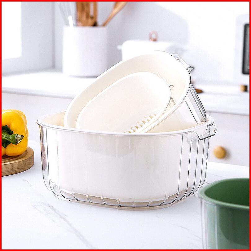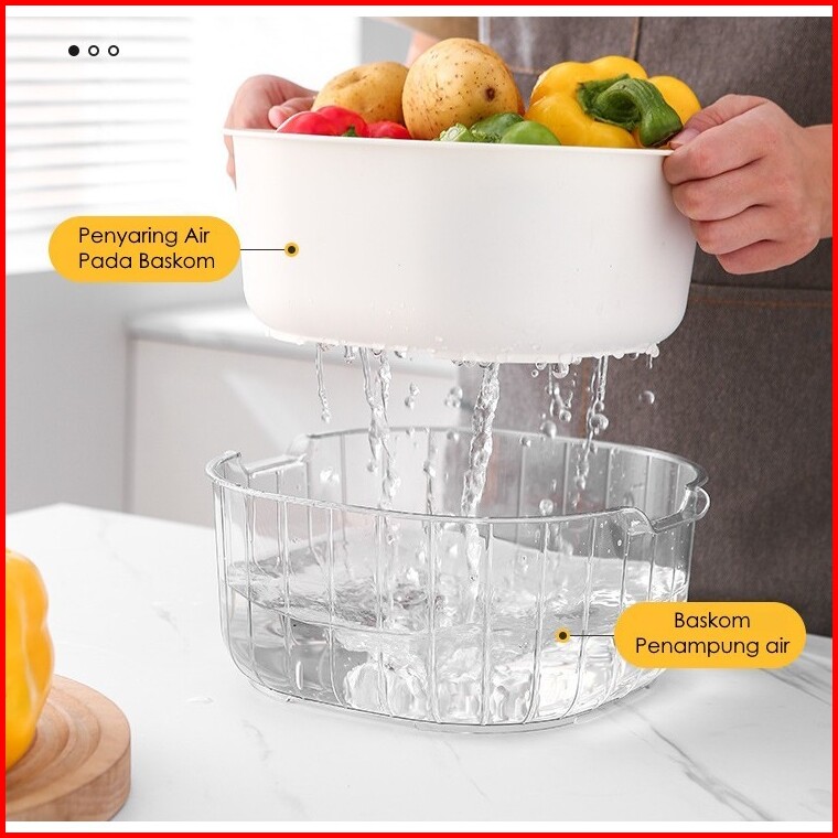 Masterhome Baskom Cuci Transparan 2in1 Dengan Saringan Peniris Buah Dan Sayuran Wadah Pengering Dan Pencuci Buah Sayur