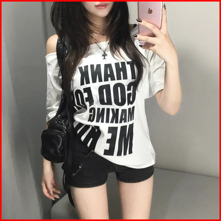 Kulor.american Style Korean Style Black Letters Sabrina T Shirt Kaos Oversize Wanita Baju Retro Vintage 386