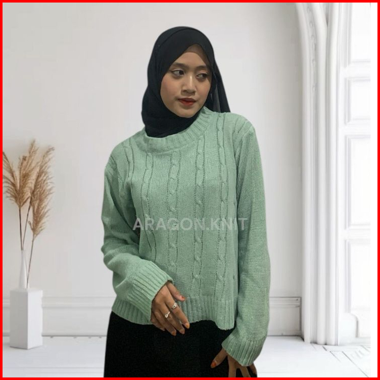Aragon Hana Blouse Rajut Cable Crop Oversize Sweater Wanita Motif Cable Baju Atasan Wanita Terbaru Tangan Panjang Blouse