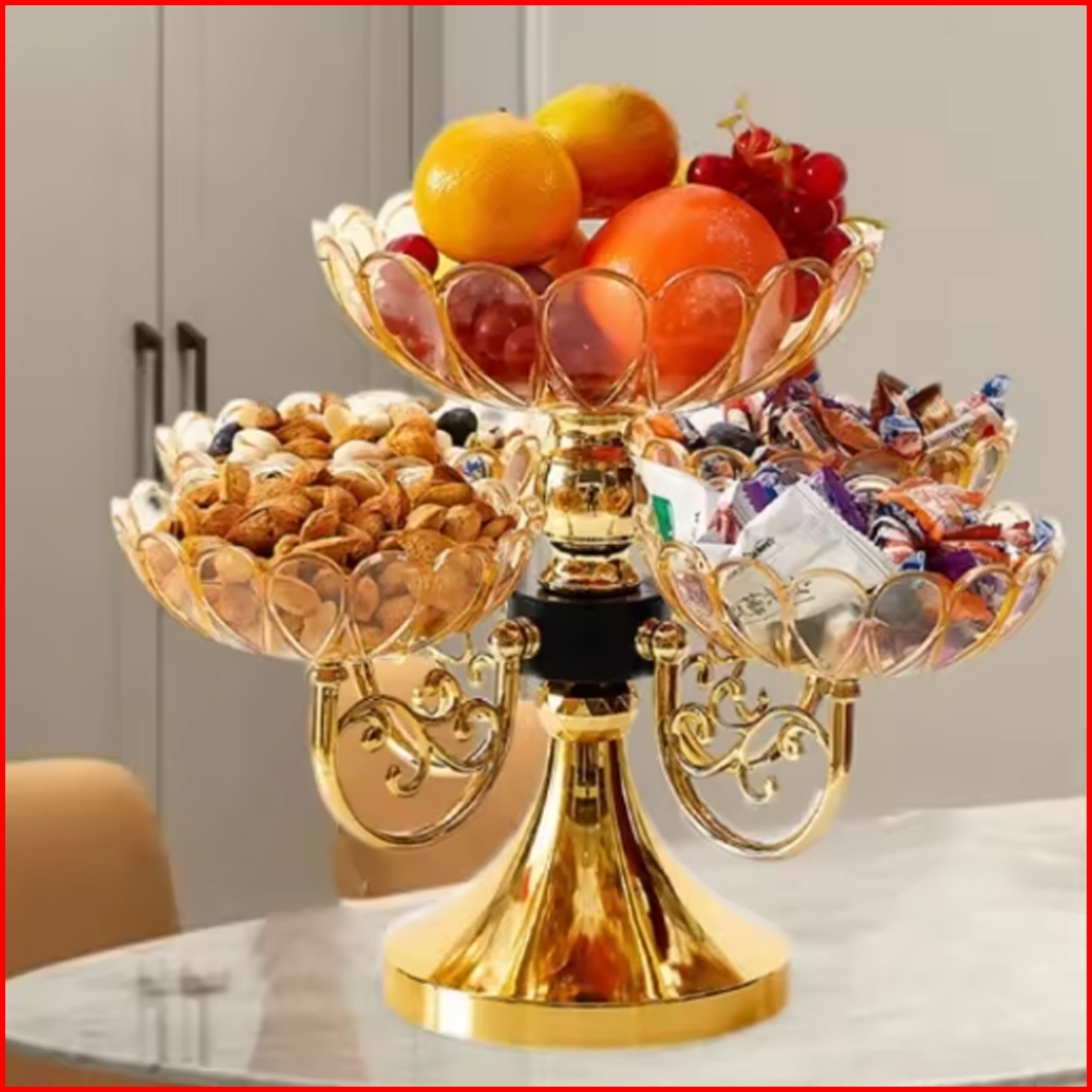 Ideame Rak Buah Rak Kue Putar Tempat Hidangan Buah Kue Tempat Permen Snack Tingkat Crystal Piring Saji Plastik Bisa Puta