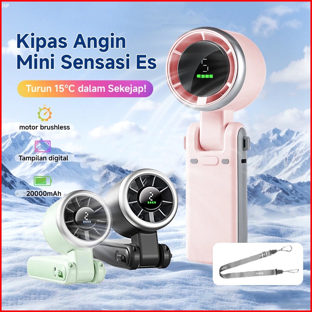 Kipas Angin Portable Mini Desain Bilah Turbin Angin Super Kuat 100 Tingkat Kecepatan Angin Tampilan Led Baterai Berkapas