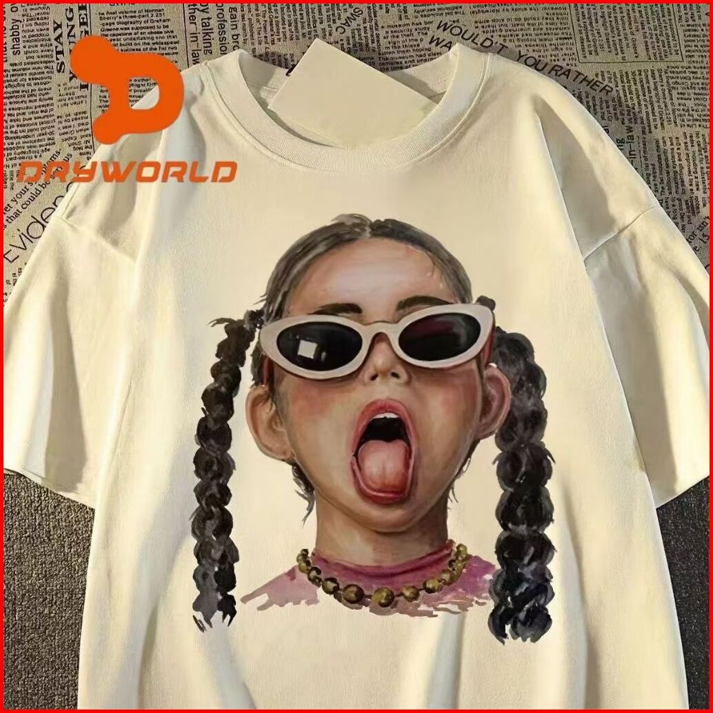 Codkaos T - Shirt Katun Bernapas Oversize Cetak Karakter Konyol Retro Keluar Jalan Sehari - Hari