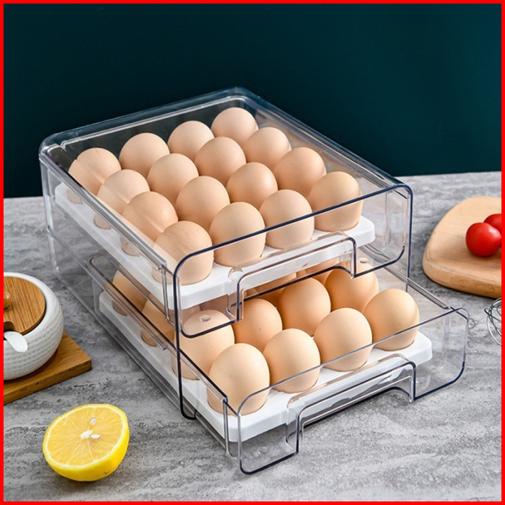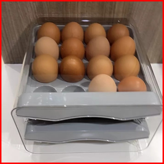 Shenar Tempat Telur 2 Tingkat Egg Storage Box Organizer Kotak Telur Rak Telur 2 Susun Tempat Penyimpanan Telur - Meta-eg