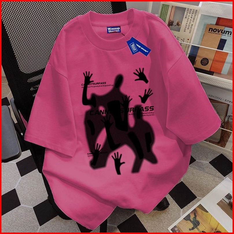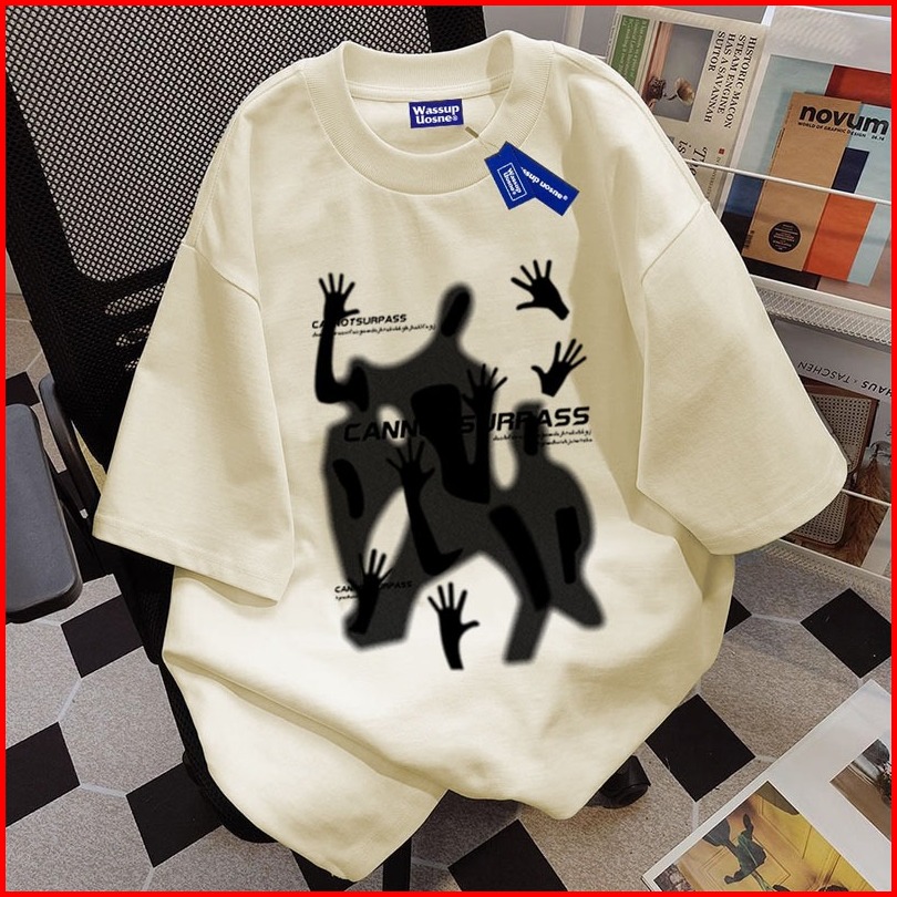 Gaya Amerika Merek Yang Trendi Tidak Jelas Bayangan Manusia Pencetakan Baju Atasan Wanita Terbaru Kaos Pria Oversize Cou