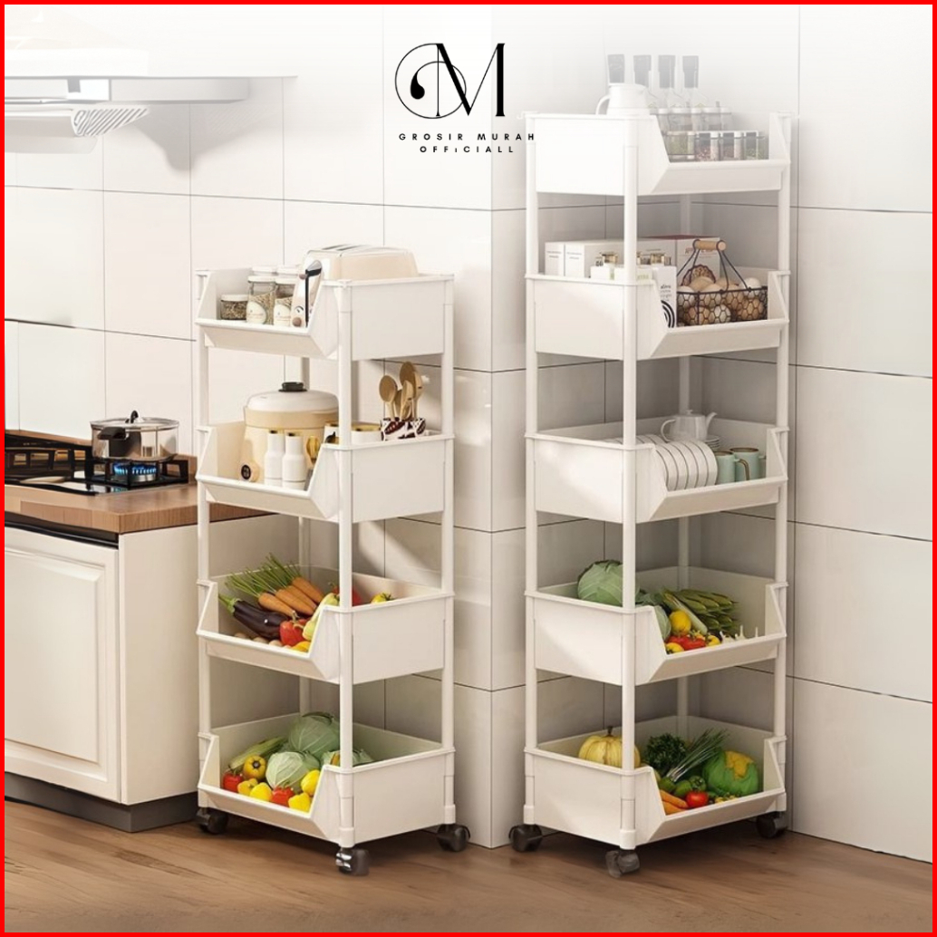 Gmo Rak Dapur Dorong Rak Susun Serbaguna 3-5 Tingkat Dengan Roda Portable Untuk Buku Mainan Penyimpanan
