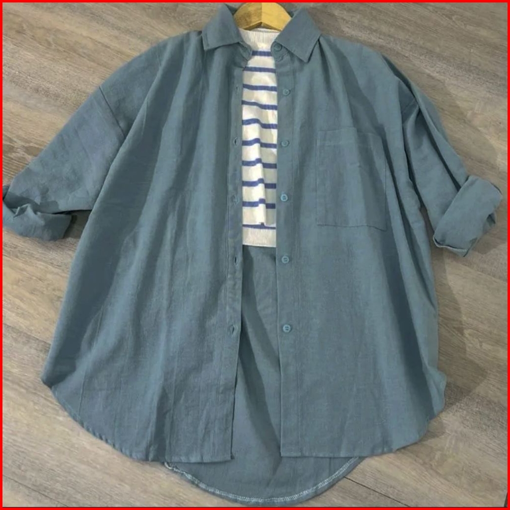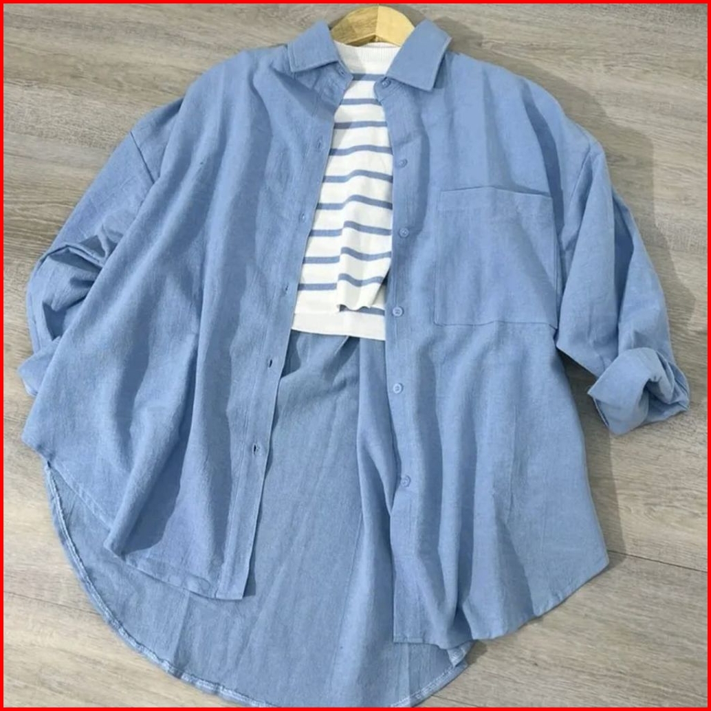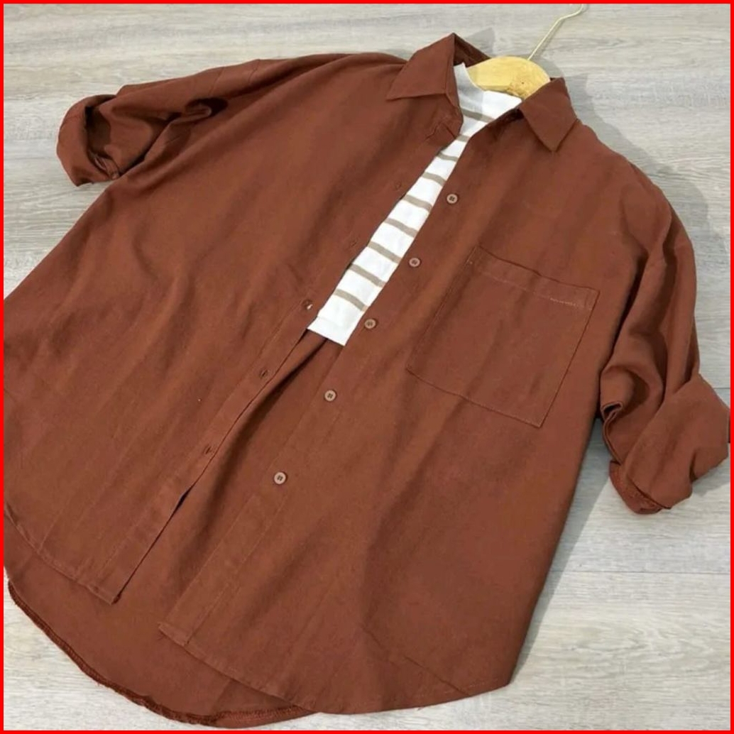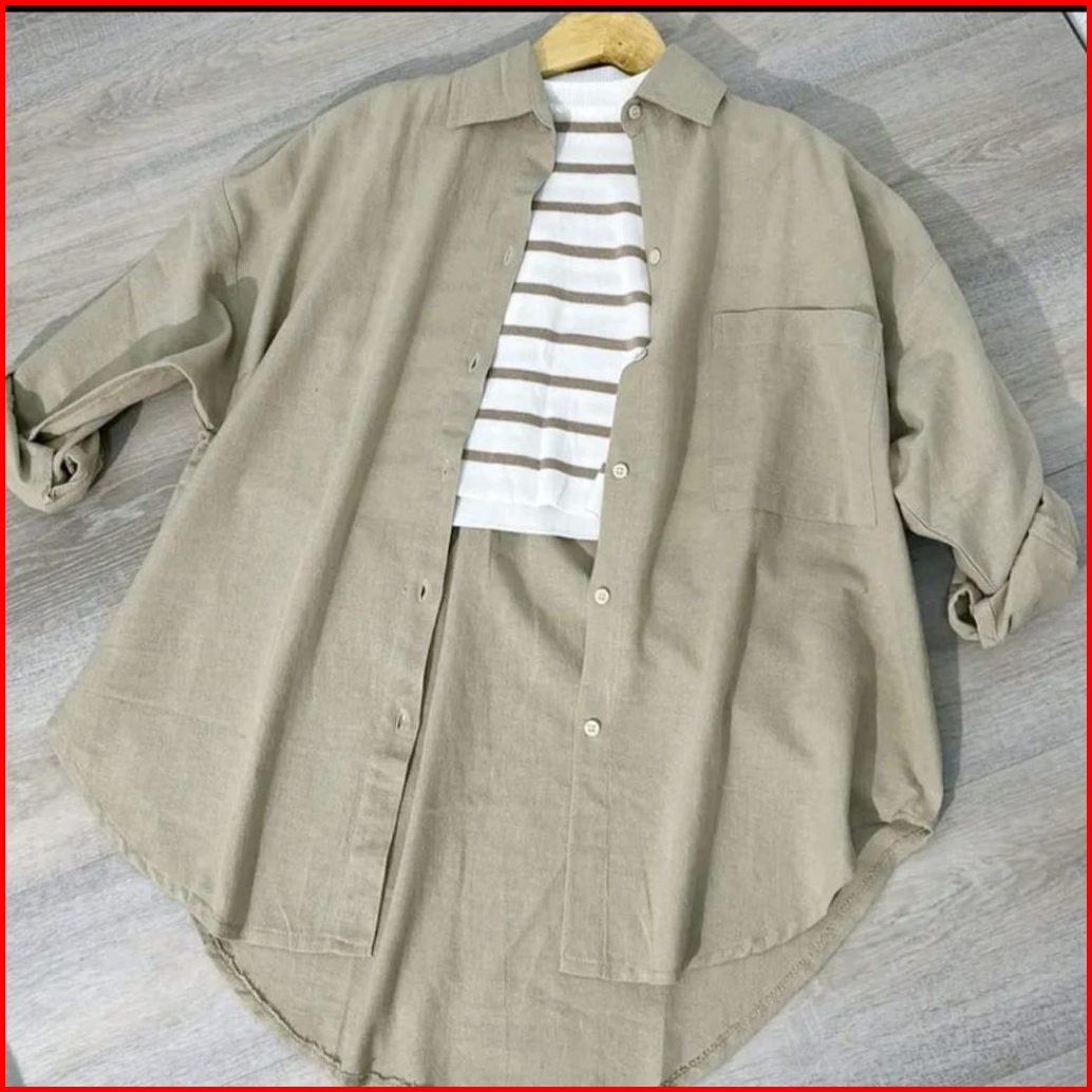 Atasan Wanita Inara Shirt Oversize Kemeja Lengan Panjang Muslimah Terbaru Kemeja Polos Bahan Katun Linen Atasan Wanita K