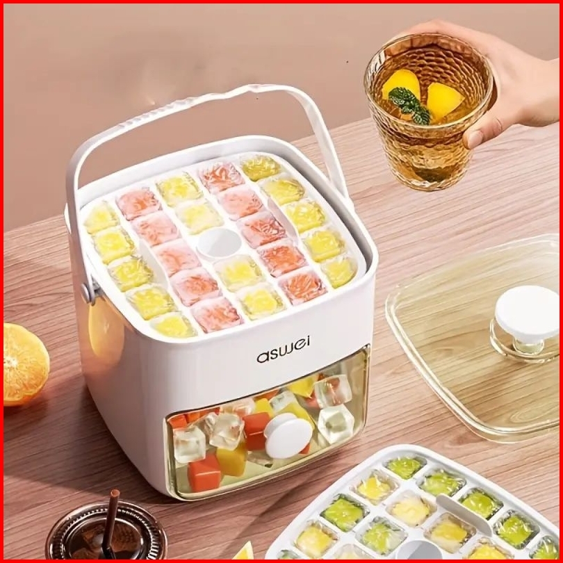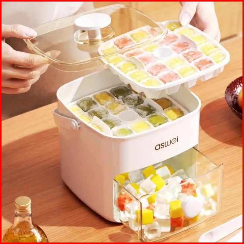Cetakan Es Batu Tekan Silikon Food Grade Jelly Kotak Besar Double Layer 48 Grid Quick Press