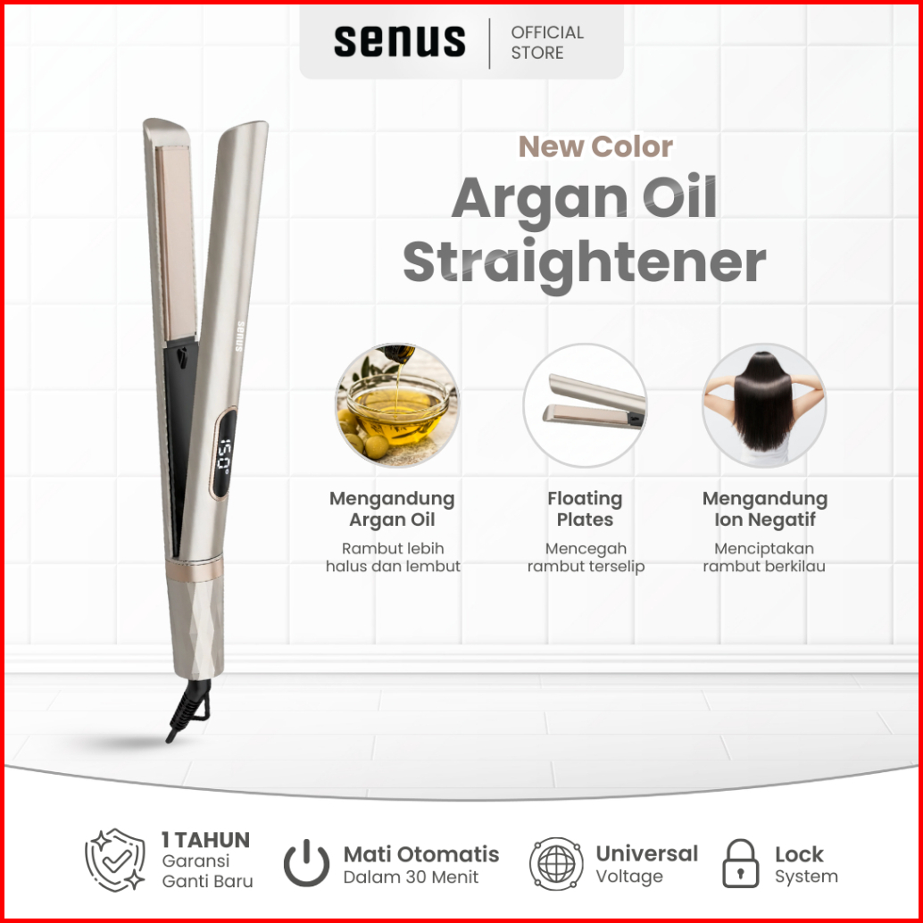 Senus Hair Straightener Catokan Pelurus Rambut Ceramic Plate Dengan Minyak Argan