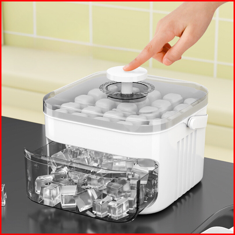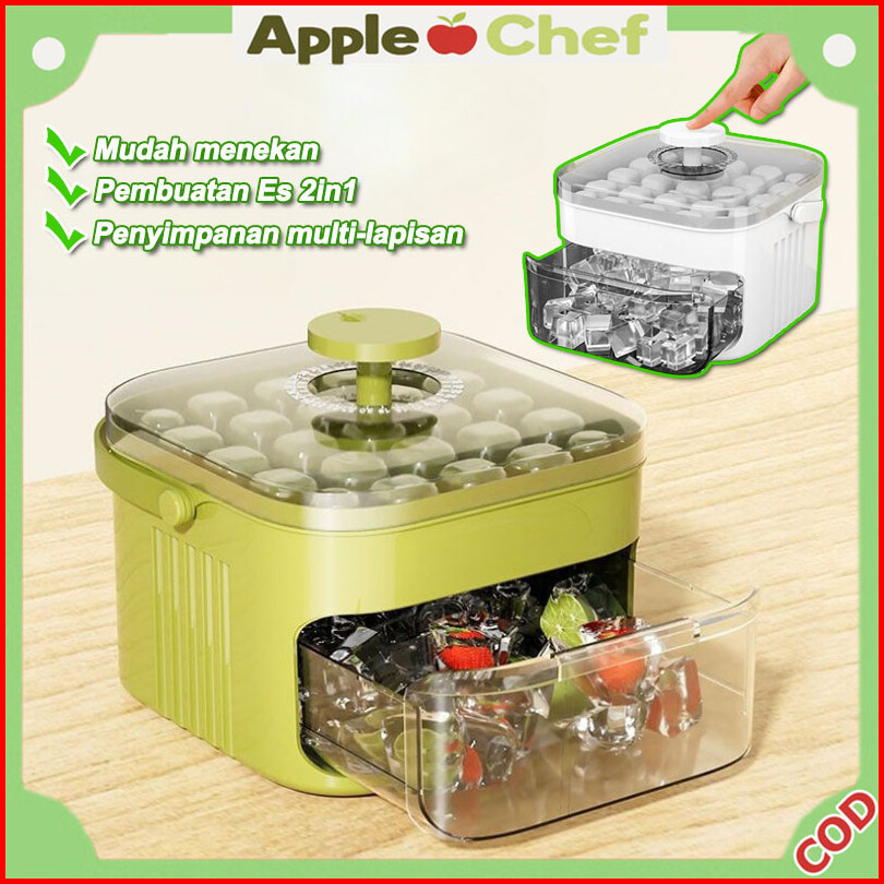 Applechef 50 Grid Cetakan Es Batu Otomatis Dengan Gagang Ice Cube Maker Dengan Press Handle Sekali Tekan Sekop Gratis