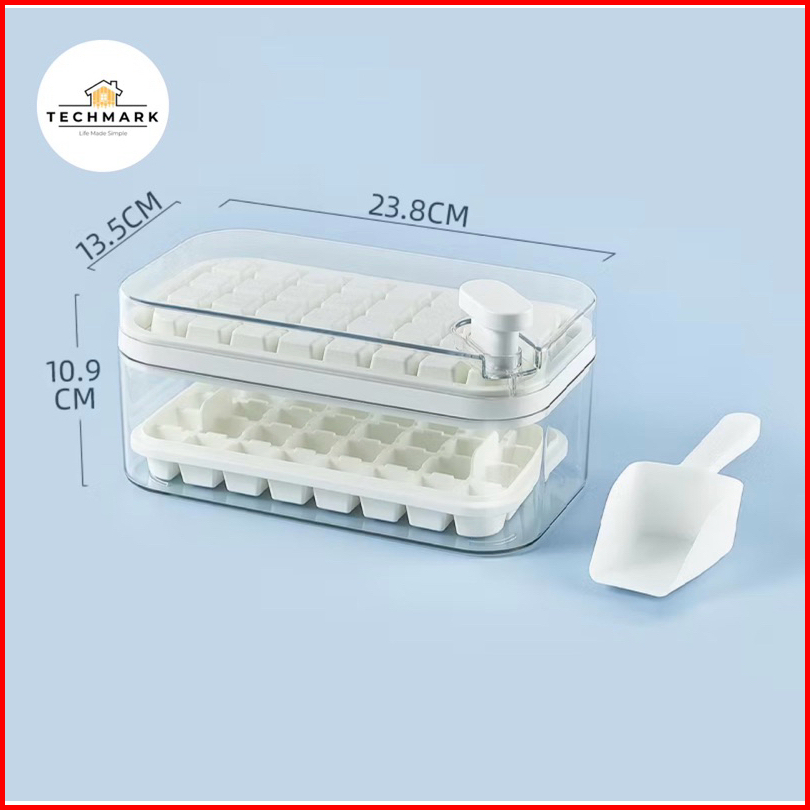 Tcm - Cetakan Es Batu Ice 32 Grid Ice Cube Container Free Sekop Dengan Press Handle Sekali Tekan