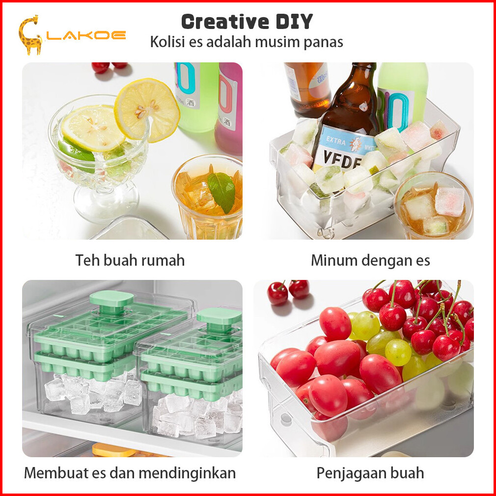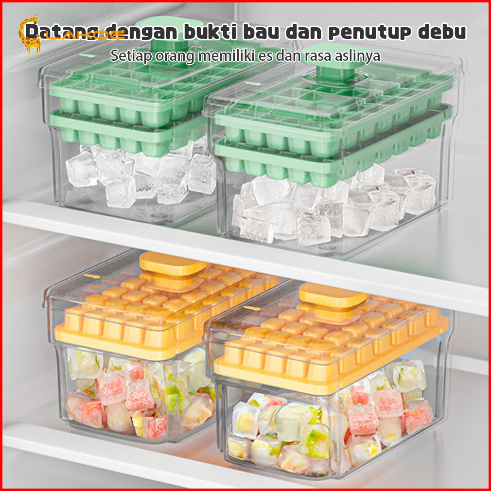 Lakoeofficialmall Cetakan Es Batu Dengan Tutup 32 Grid 2 Tray Tempat Es Batu Kotak Ice Cube Maker Bpa Free