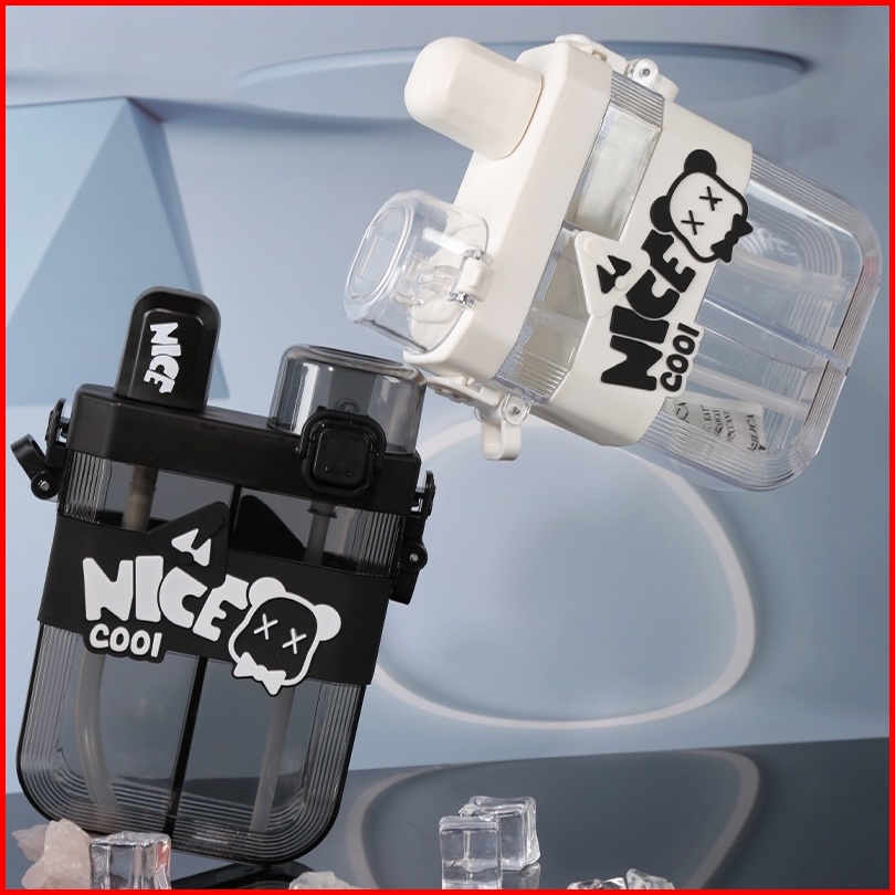 Botol Minum Terbaru 2 Sisi Botol Minum Sedot Double Water Bottle Tritan Kapasitas 620ml