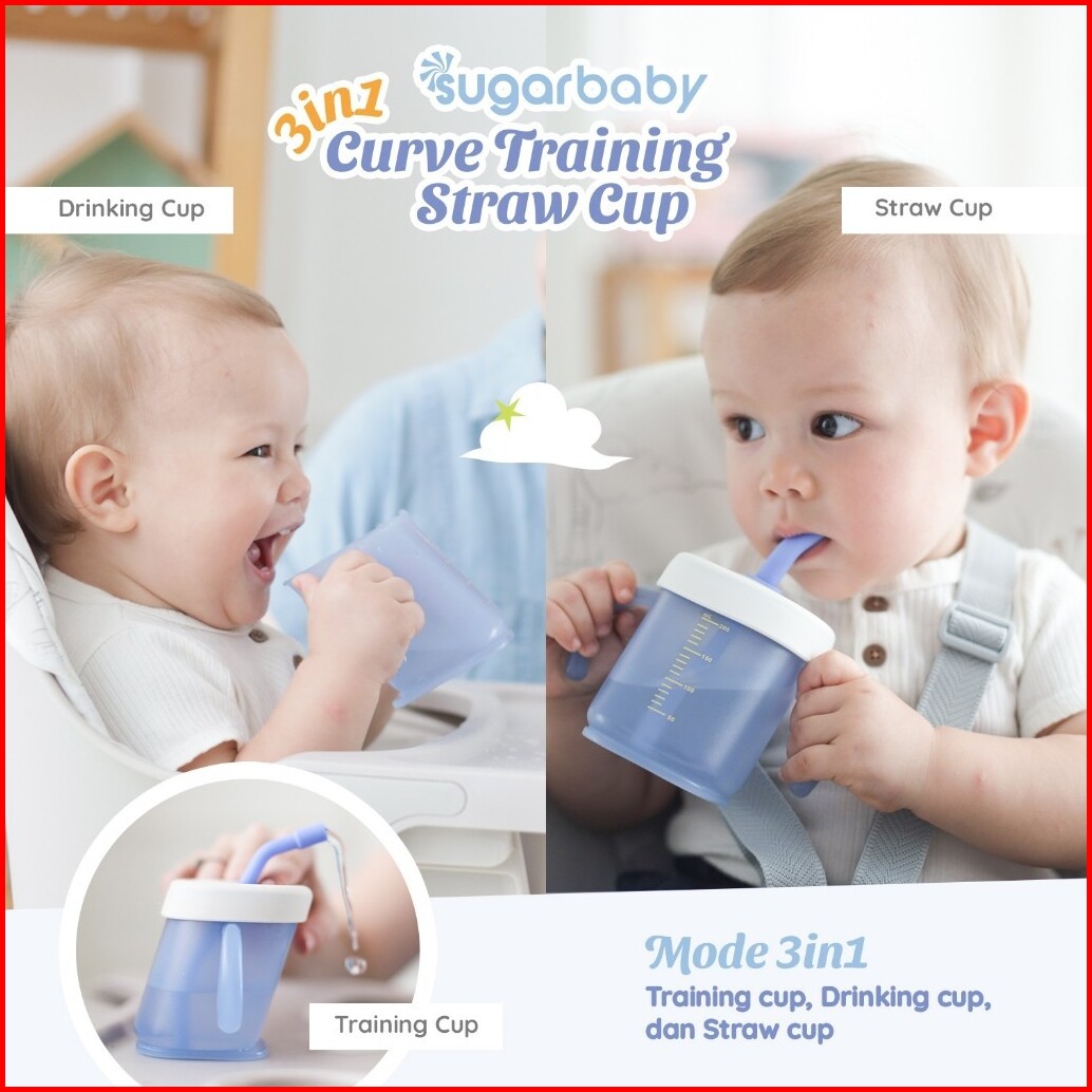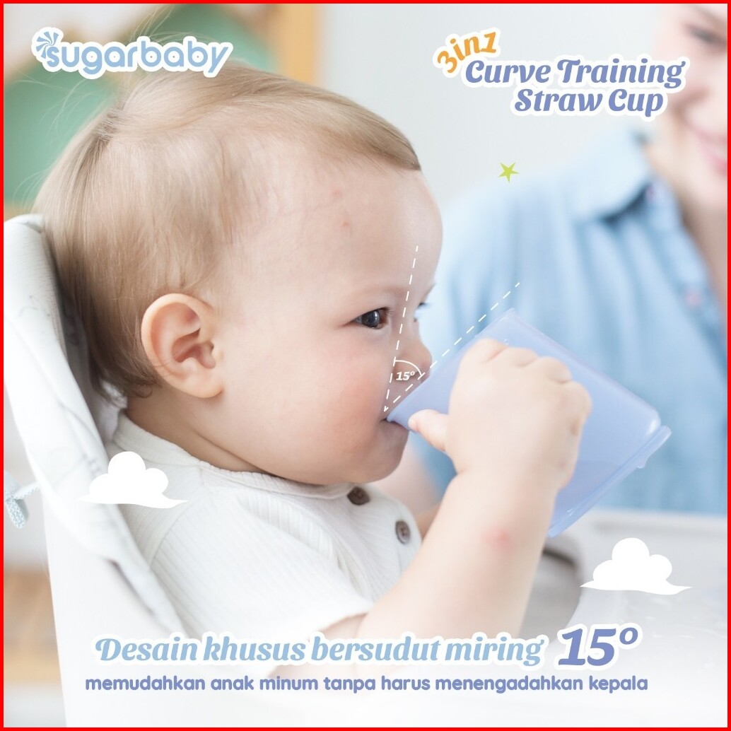 Sugarbaby 3in1 Curve Training Straw Cup Gelas Mpasi Bayi Botol Minum Gelas Bayi Anti Tumpah Anti Bocor Sugar Baby 3 In 1