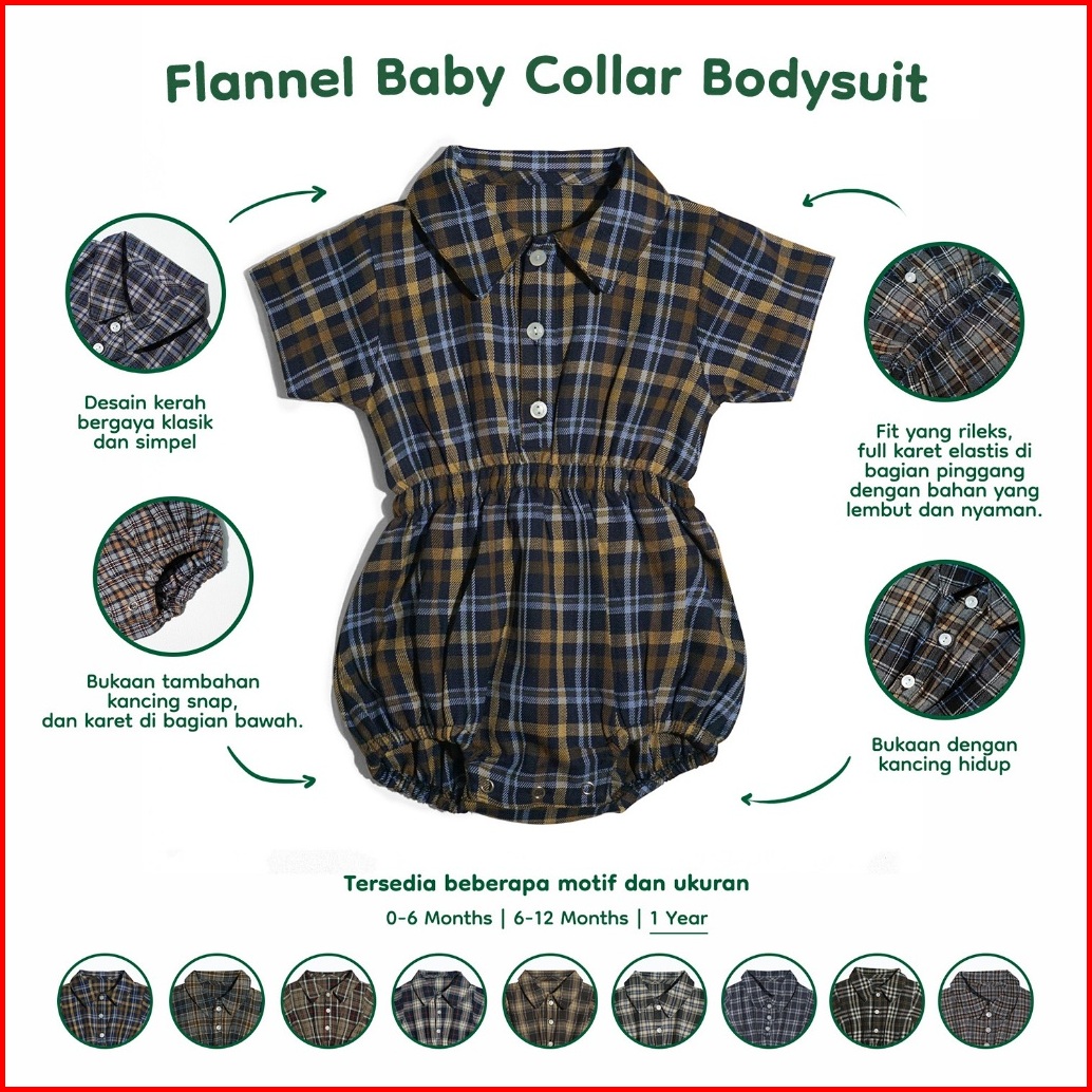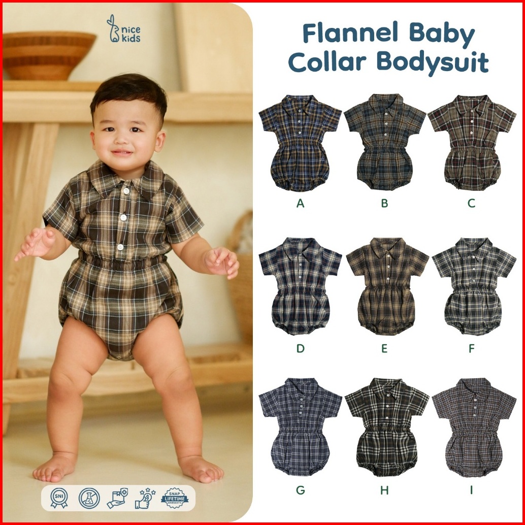 Nice Kids - Flannel Baby Collar Bodysuit Romper Kotak Bayi