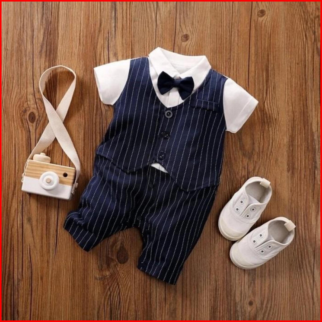 Jumper Tuxedo Bayi Navy 0-18 Bulan Jumper Bayi Lengan Pendek Tuxedo Bayi Pendek Baju Bayi Laki Laki