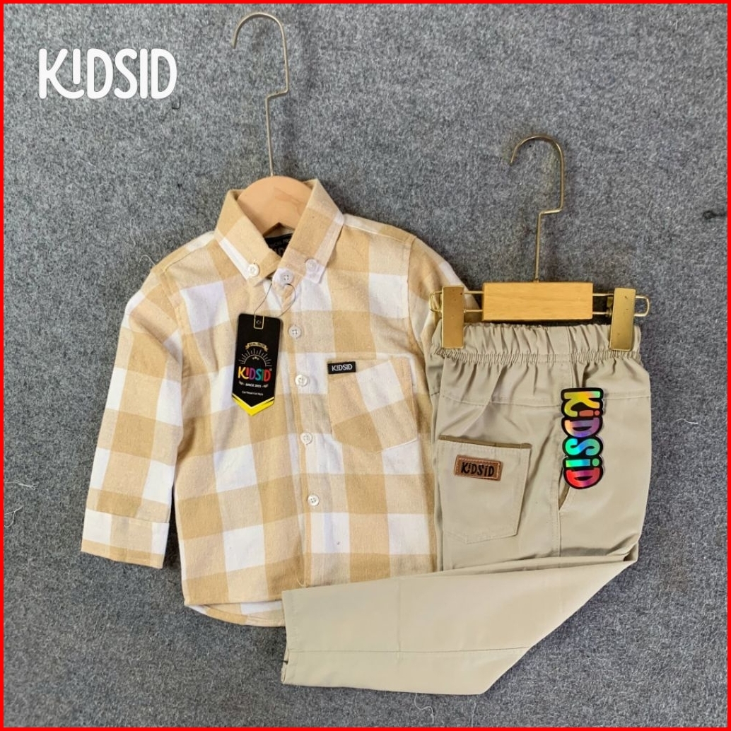 Kidsid Setelan Kemeja Anak Laki Laki Kemeja Flanel Celana Chinos Panjang 1-14 Tahun - Setelan Kemeja Flannel Usia 1 2 3