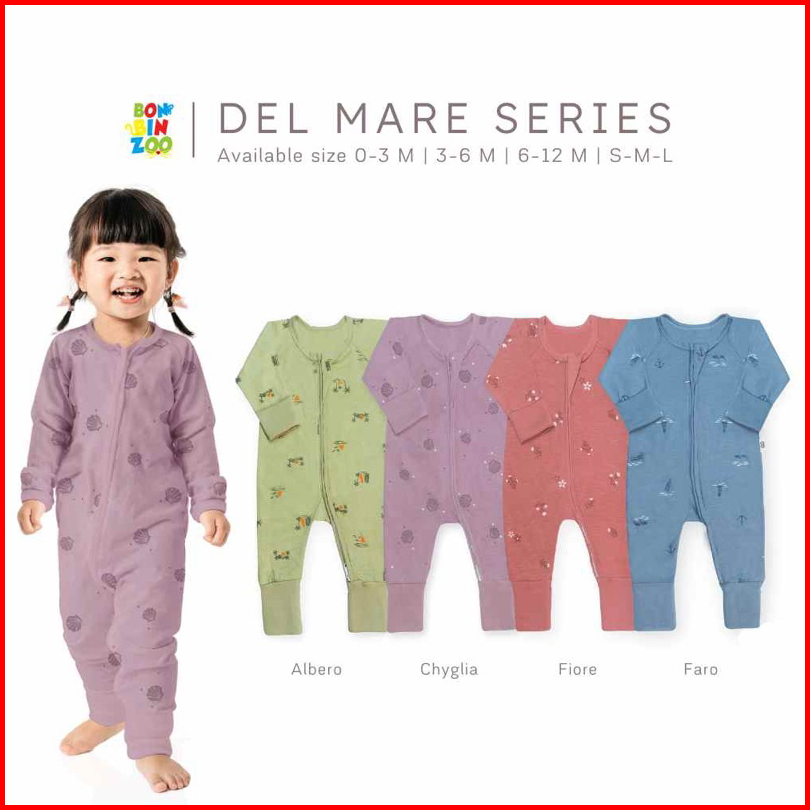 Bonbinzoo - Sleepsuit Resleting Baby Newborn Del Mare Series Jumper Anak Bayi 0 - 3 Tahun