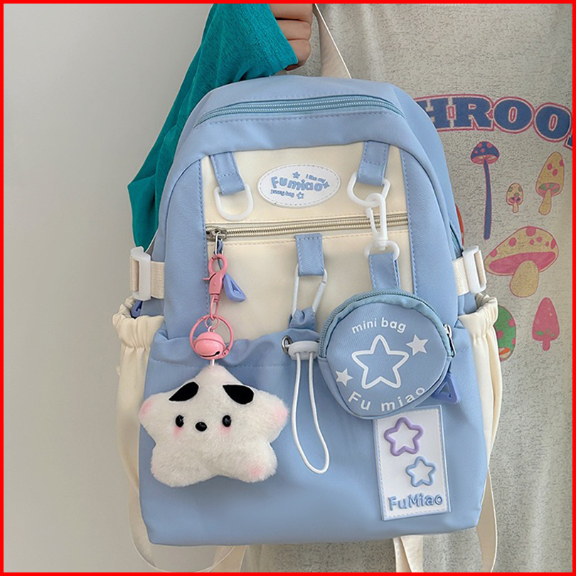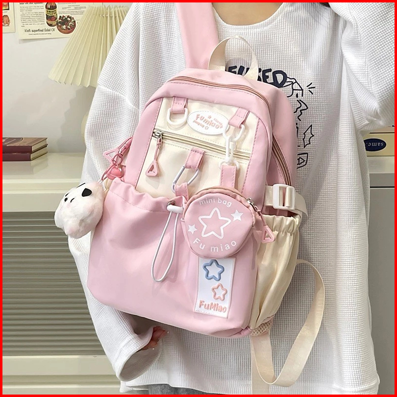 Widget Gratis Tas Sekolah Ins Wanita Lucu Tas Ransel Serut Siswa Perempuan Volume Tinggi Tas Bahu Kapasitas Besar Korea