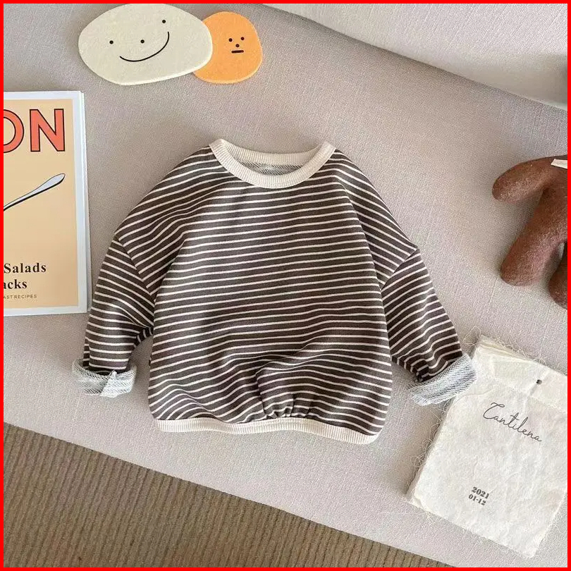 Brownieground Sweater Anak Laki Laki Dan Perempuan Usia 6 Bulan - 5 Tahun Motif Garis Cream Coklat