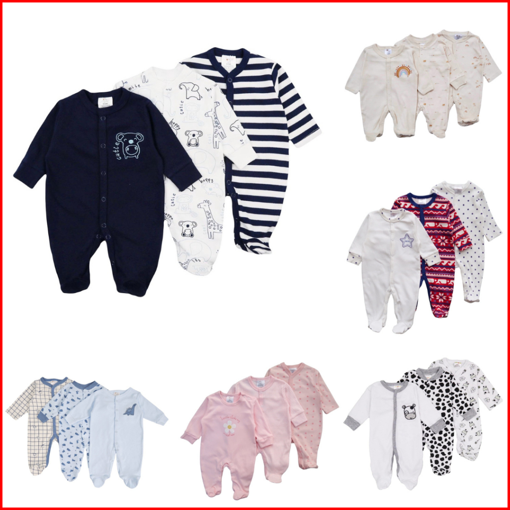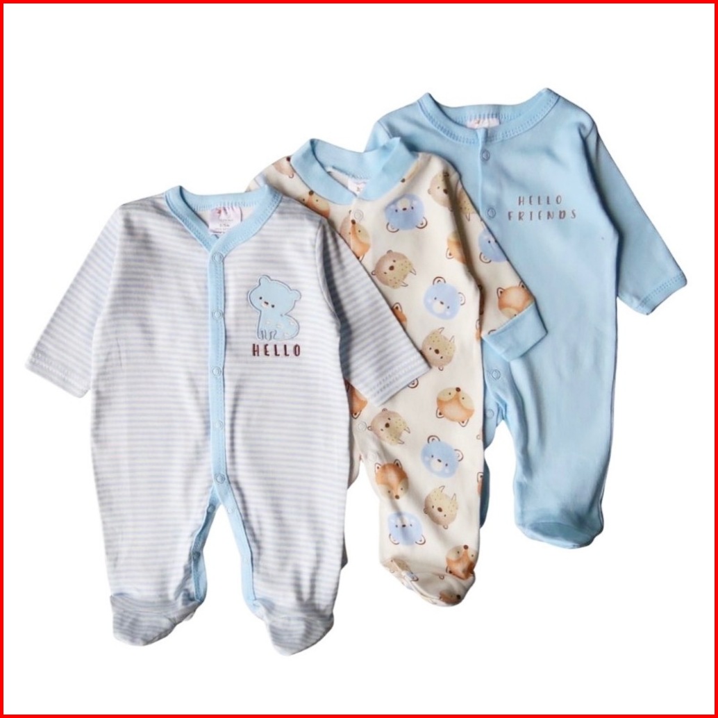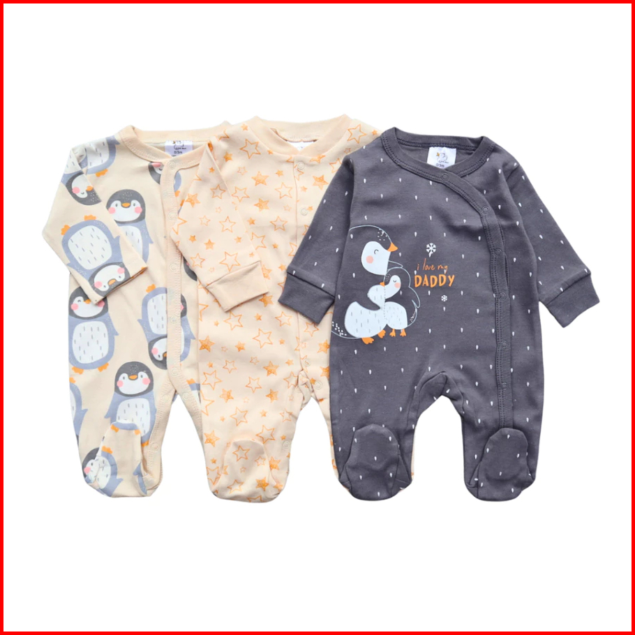 Littlesummerise - 3pcs Sleepsuit Bayi 0-9bulan Baju Tidur Bayi Anak Paket Jumper Panjang